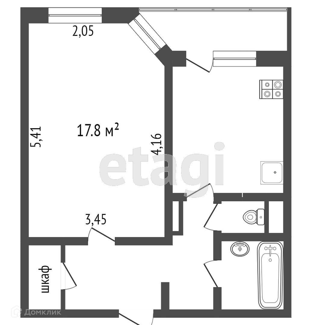 Балкон, лоджия 1 балкон