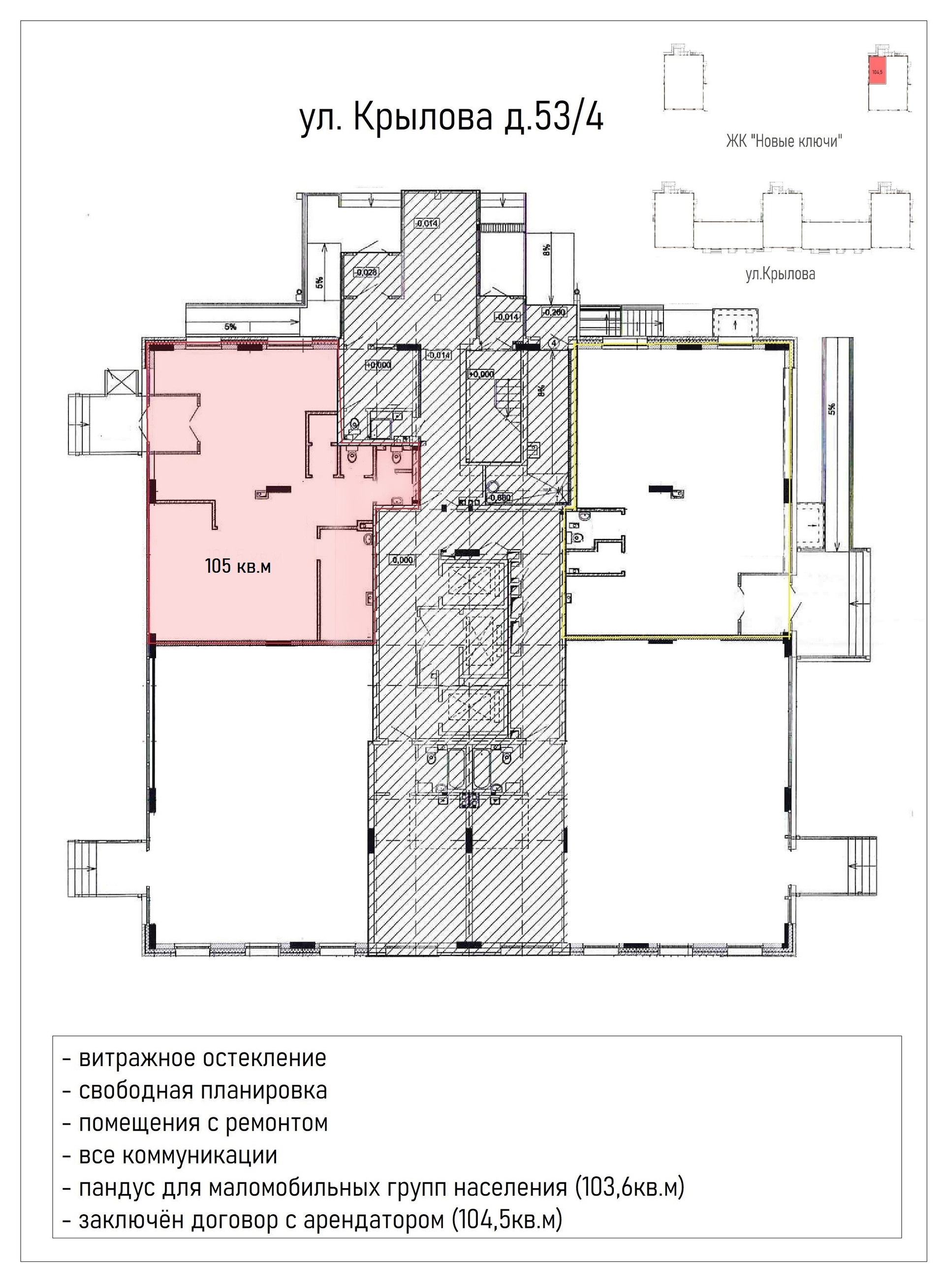 Коммерческая недвижимость располагается на первом этаже жилого дома Крылова 53/4