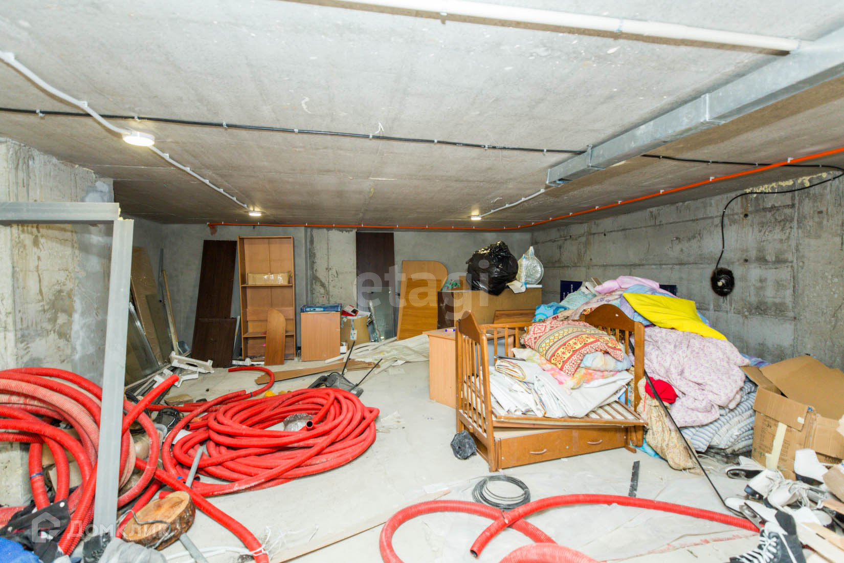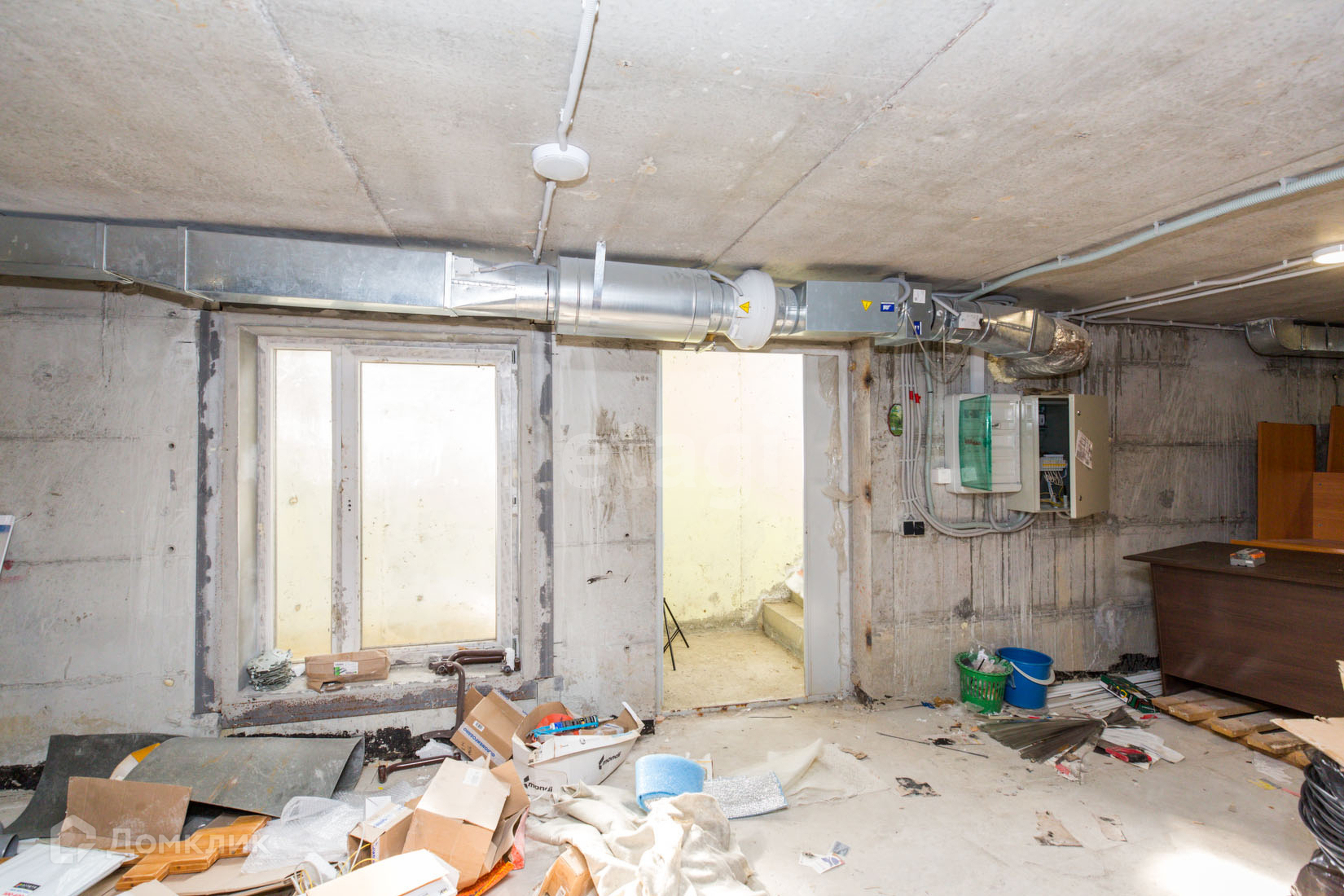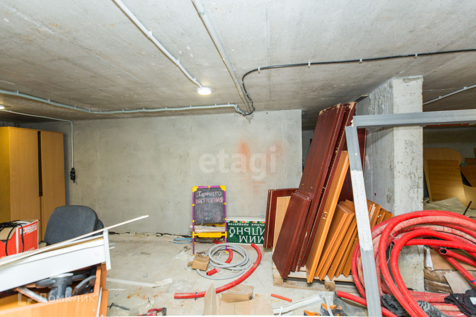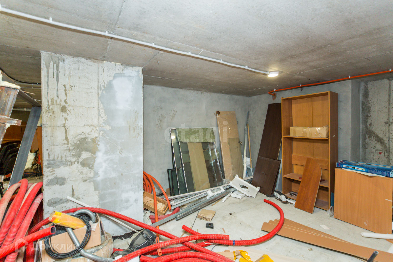 В помещение ремонт от застройщика, Залит и выровнен пол и проведена электрика.