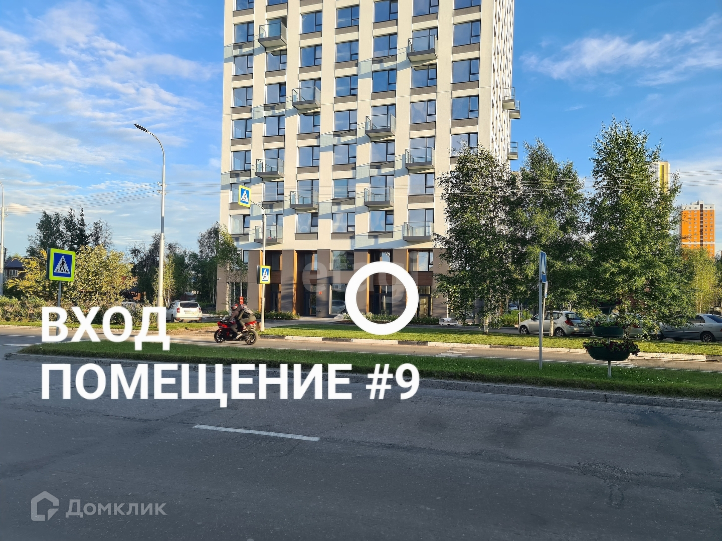 На изображении реальное фото самого помещения, входной группы, дома, парковки