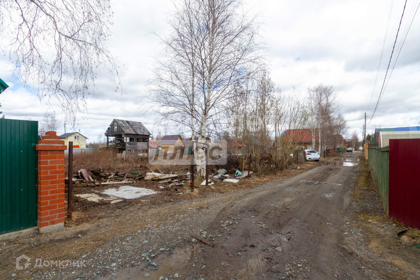 Рядом с участком установлен столб с проведенным к нему электричеством (счетчик на участке), что значительно упрощает подключение к энергоснабжению. Хотя участок пока не огорожен, его обширная площадь обеспечивает много пространства для реализации ваших планов.