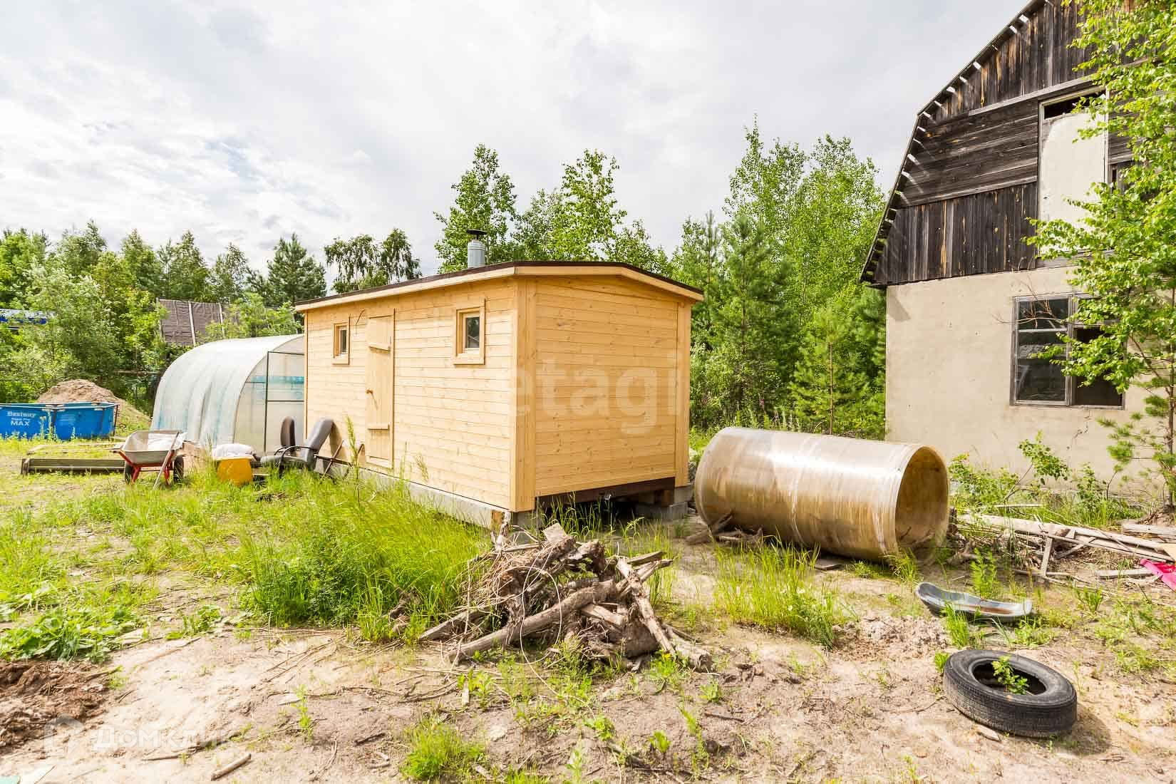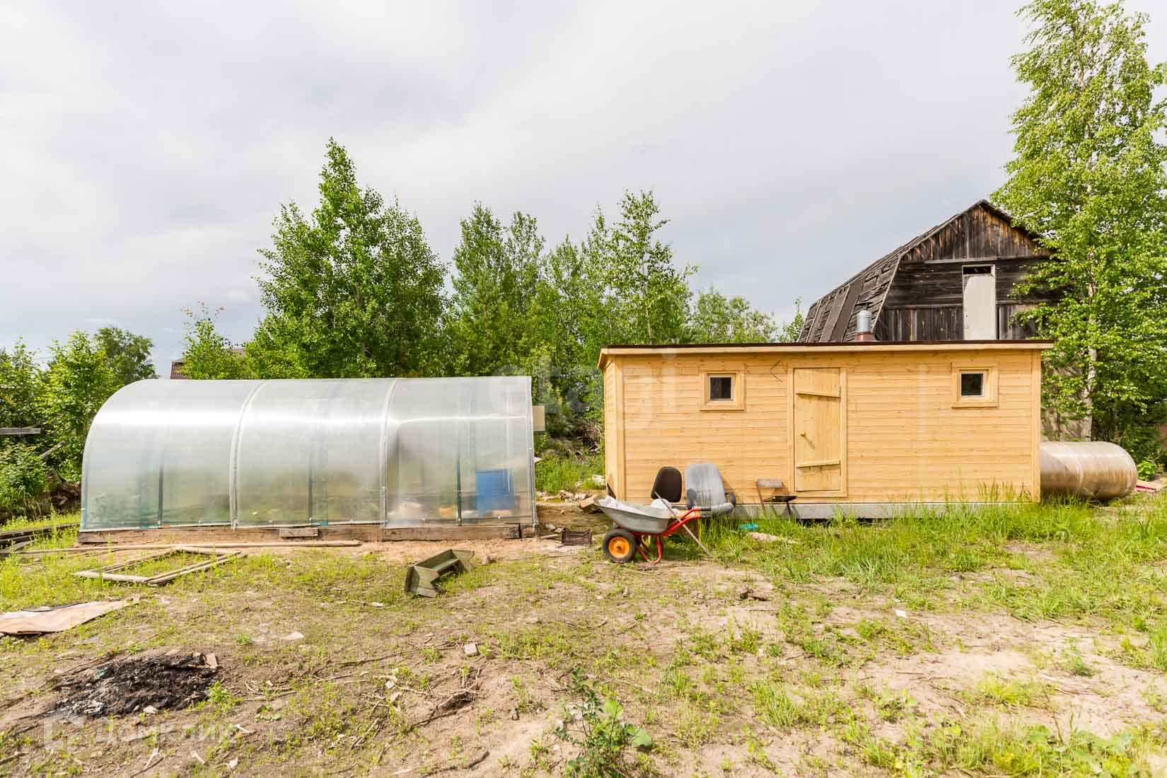 На участке имеется новая баня, теплица, маленький домик (18 кв.м). Участок расчищен.