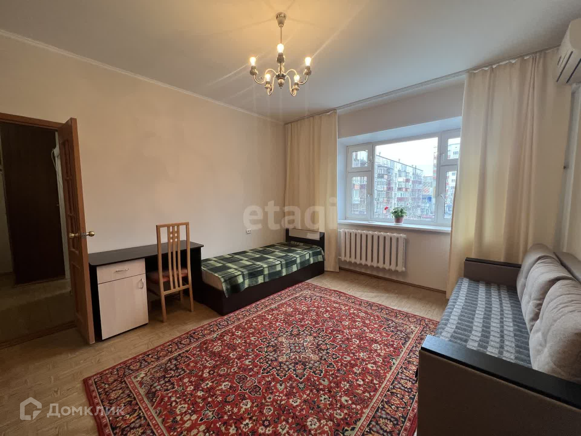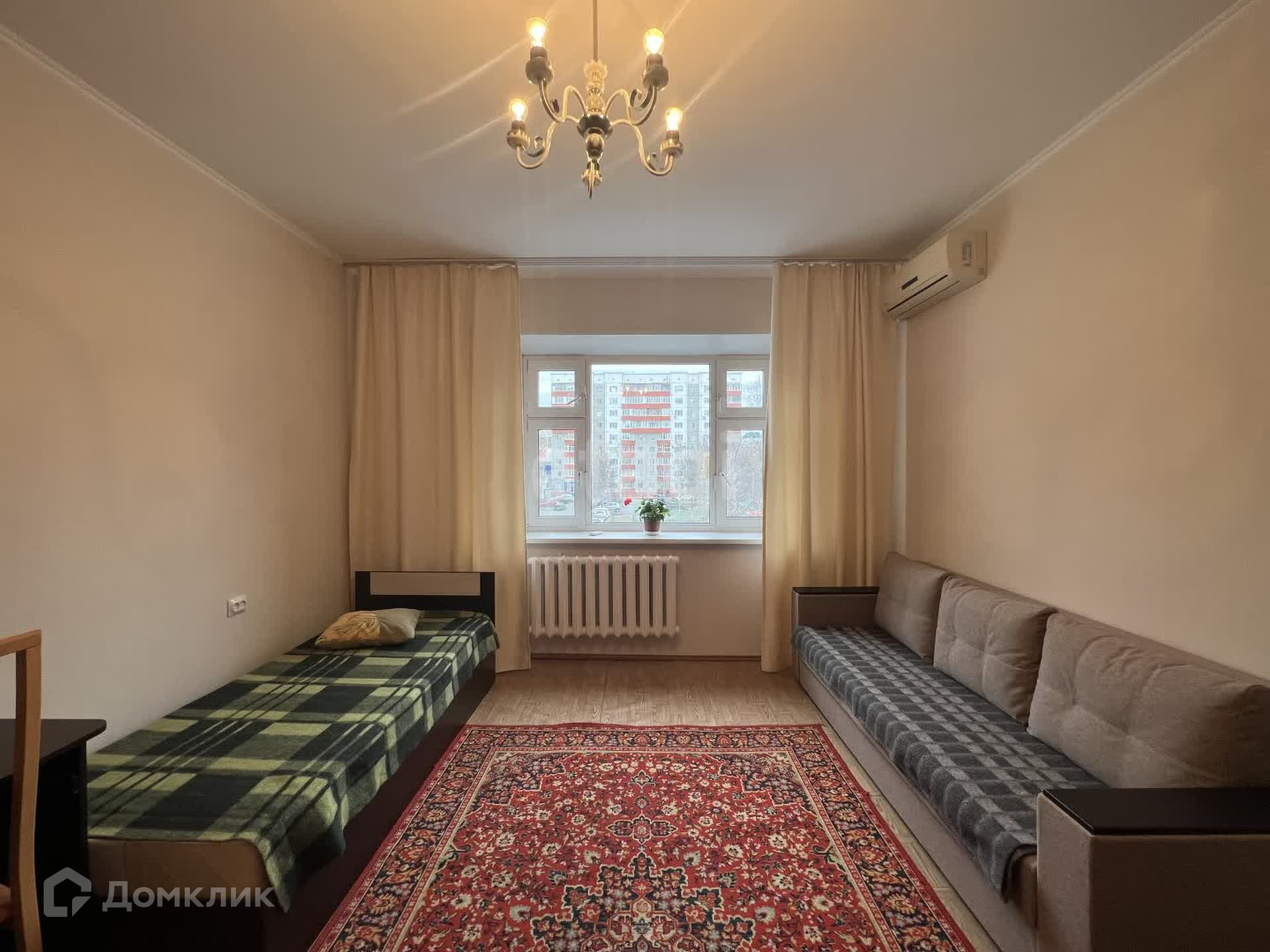 В квартире есть все необходимое для комфортного проживания. В комнате, в которой будете проживать: диван раскладной, кровать, шкафы для хранения вещей, телевизор и кондиционер. В общем пользовании кухня и санузел с ванной. Отдельный холодильник на кухне, микроволновая печь, плита, чайник - все в отличном состоянии.