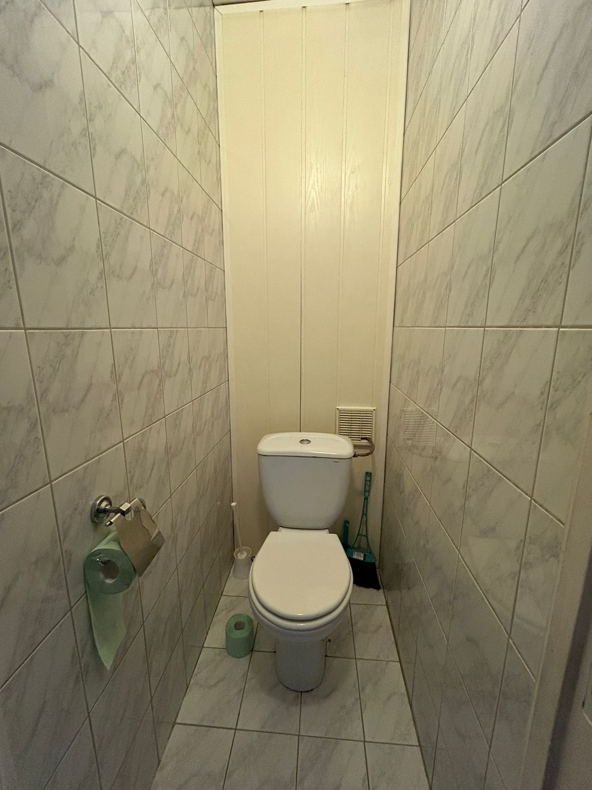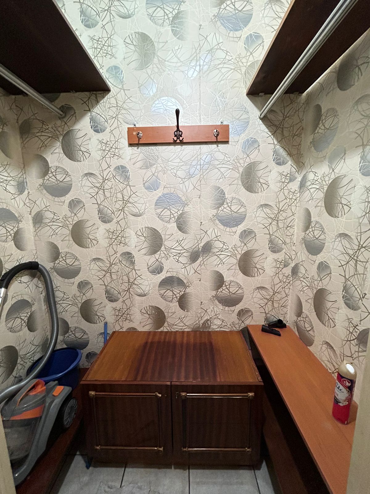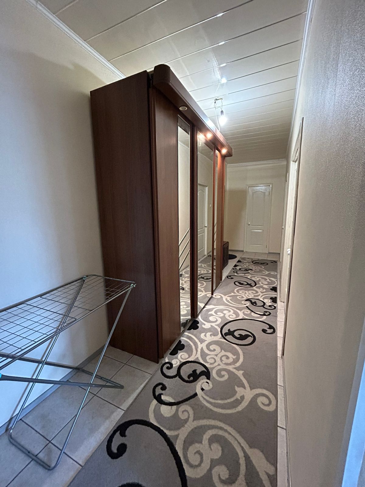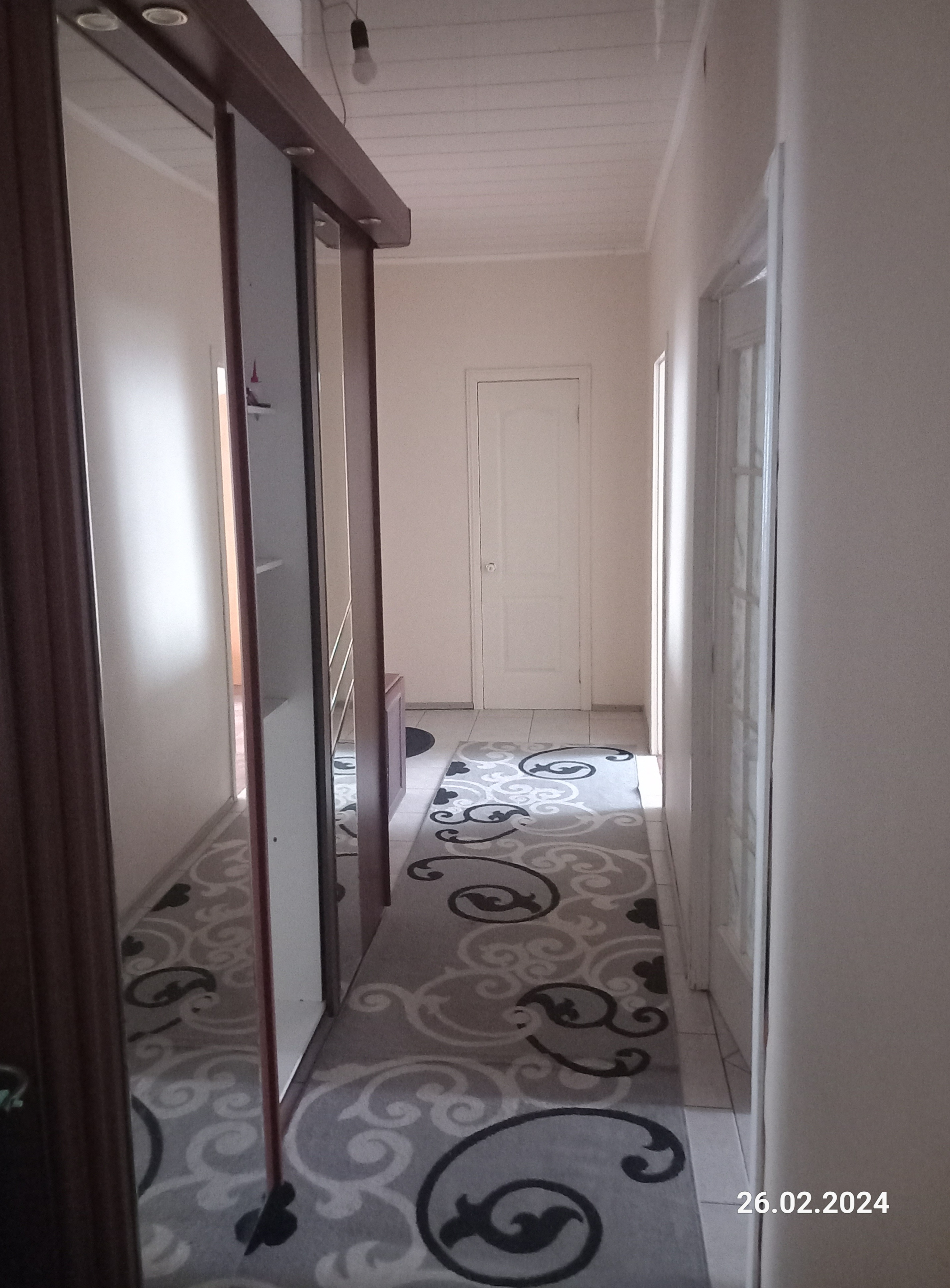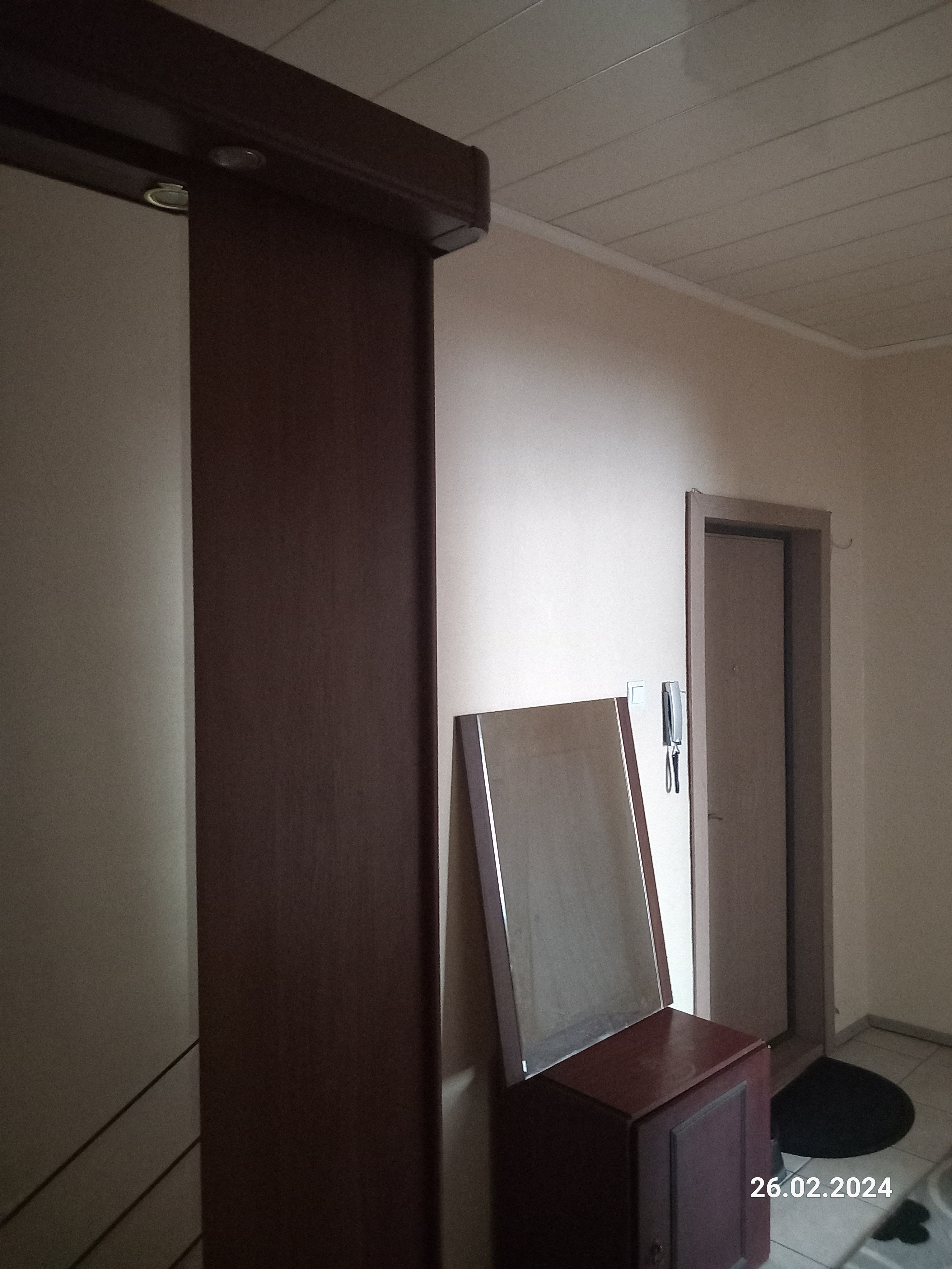При входе вместительная кладовая.