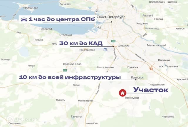 Расположен поселок в 10 минутах от г.Павловск со всей необходимой инфраструктурой и красивейшими парками.