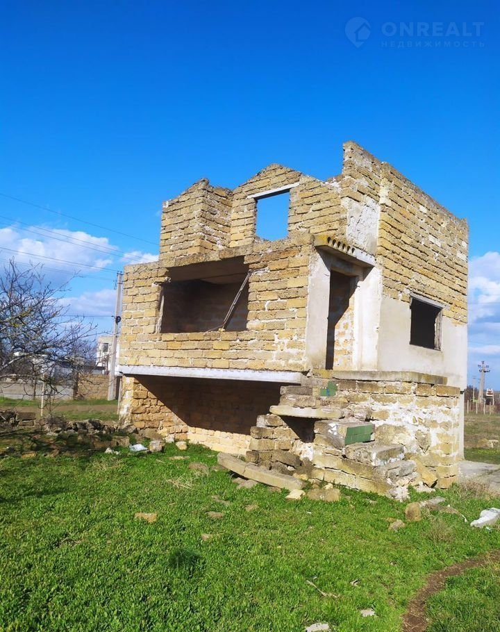 Продам ровный участок с недостроенным домом 100м (ракушка и плиты перекрытия). Постройка качественная. Свет,вода на участке.