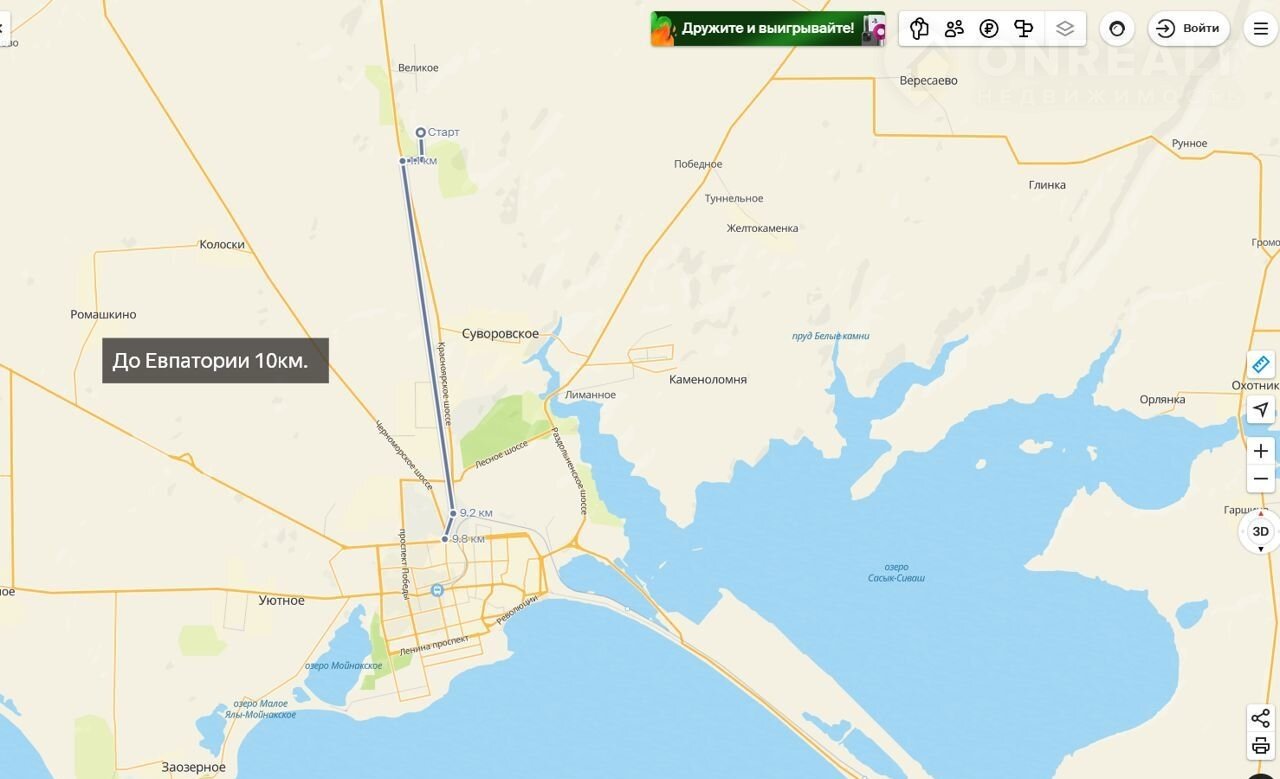 - Расстояние до Евпатории - 10км.