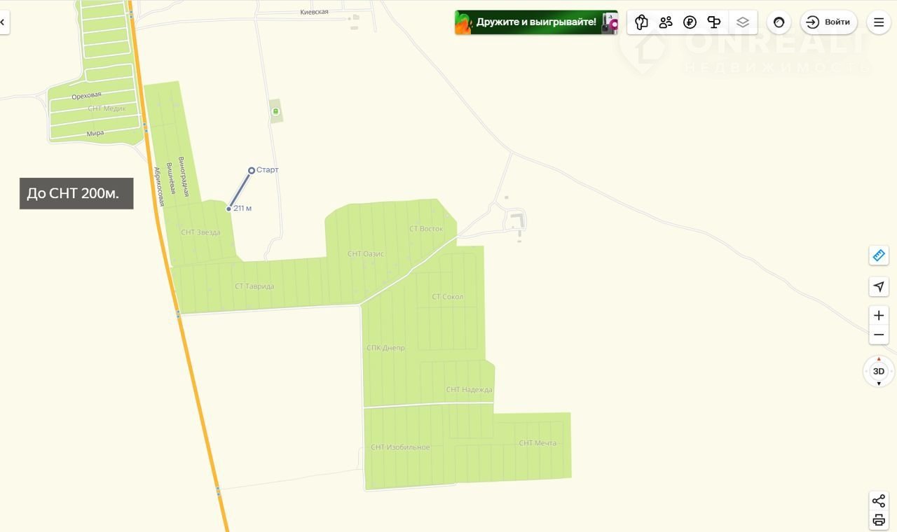 - Вокруг 3 СНТ и село (в селе магазины, почта и фельдшерско- акушерский пункт).