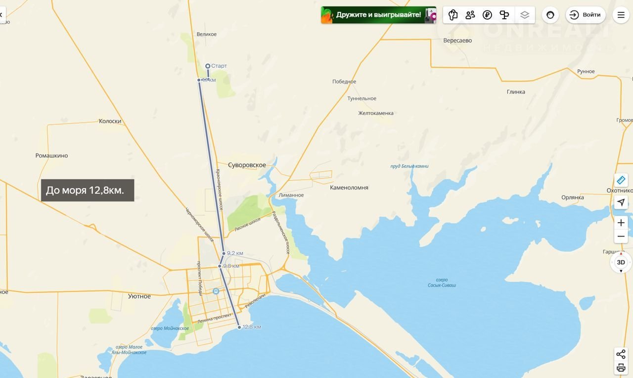 - Расстояние до Черного моря — всего 12,8 км.