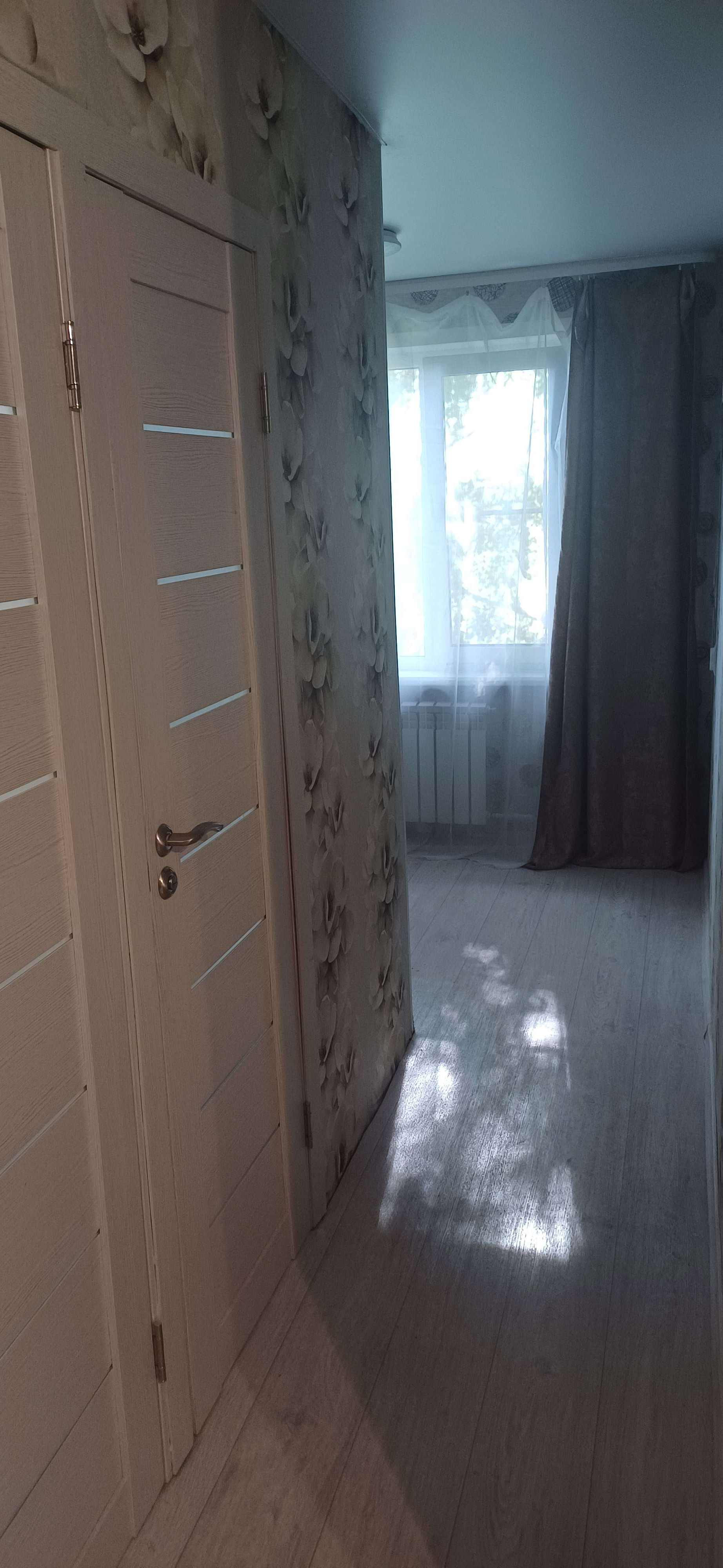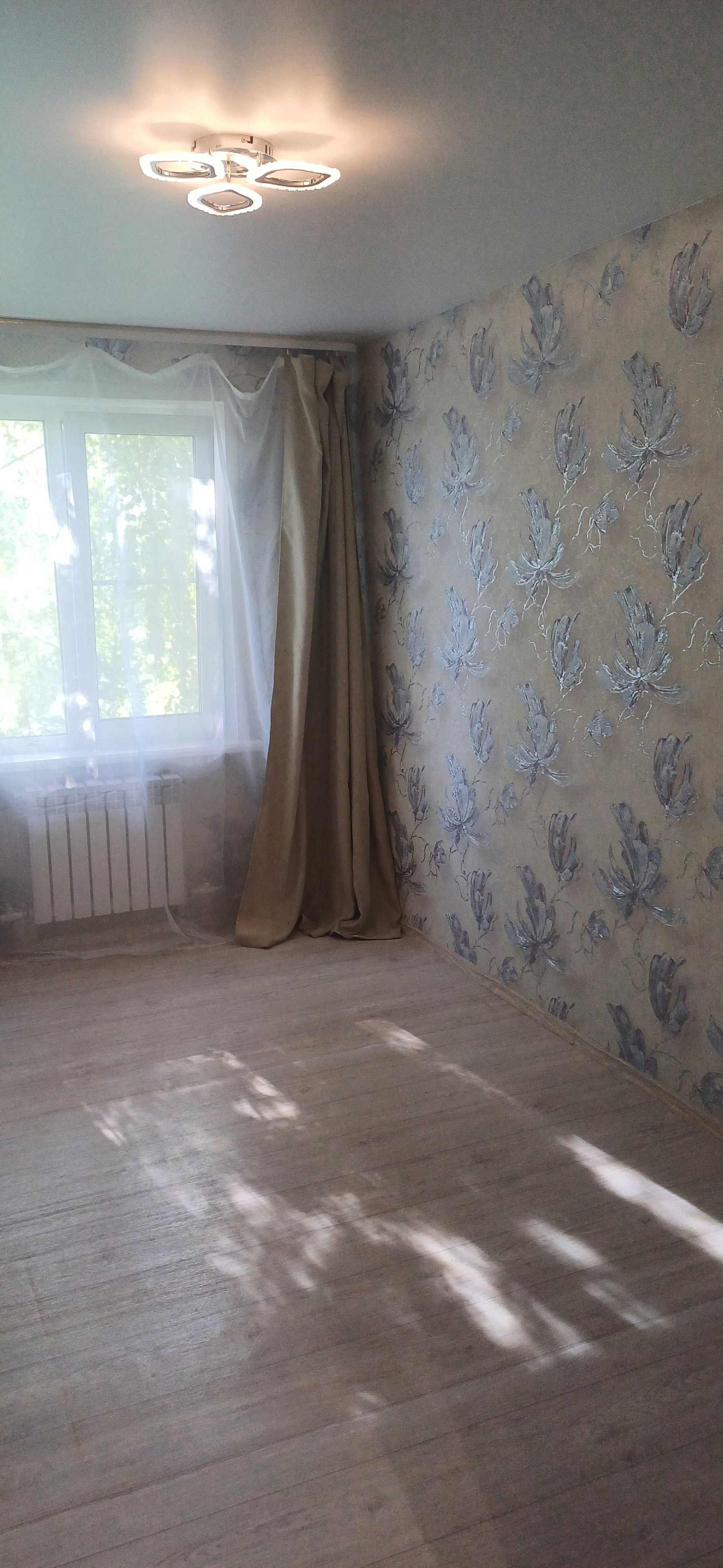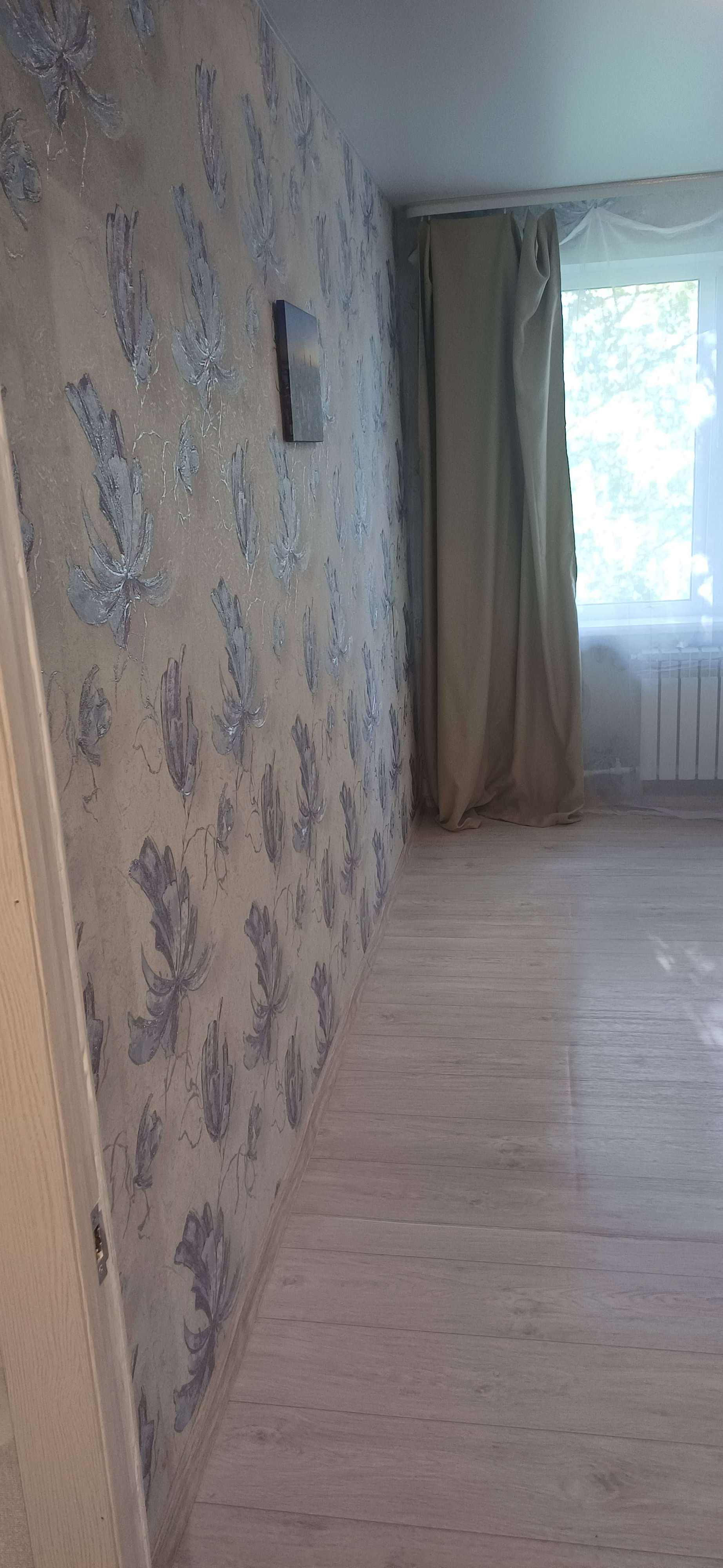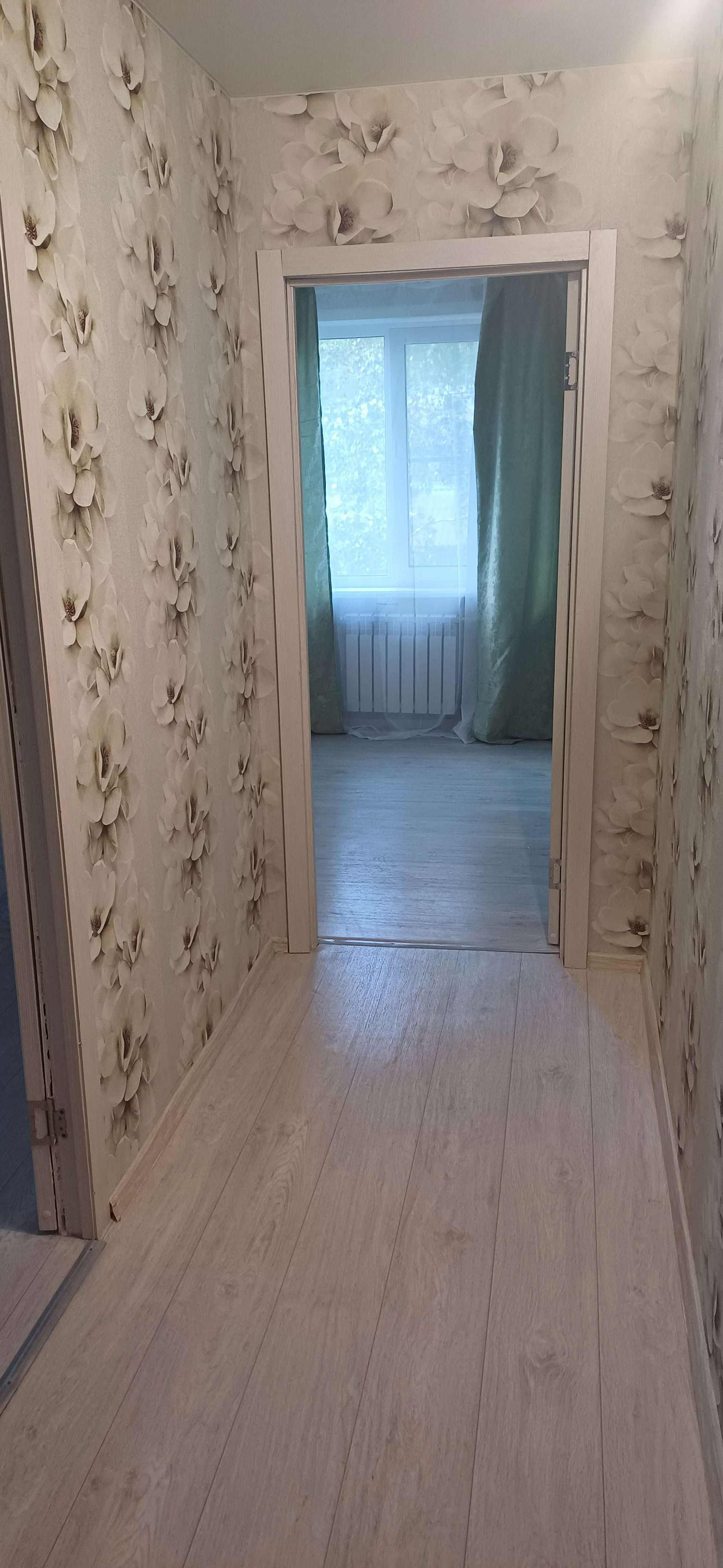 В квартире в 2024 году сделан капитальный ремонт, никто после ремонта не жил, собственники двое супругов, никто не прописан. Произведены замена всех труб, сантехники, полотенцесушителя, ванны, унитаза, раковины с тумбой, обработка стен, установка половой плитки, счетчиков, всего электрощитка, пластиковых окон и подоконников, батарей, пола (установлены фанера и линолеум), новая газовая плита Гефест (зарегистрирована), новые навесные потолки с Лед светильниками и пультами, карнизы, шторы, новая перегородка-стенка, двери с коробками, входная металлическая дверь с зеркалом, поклеены обои. Все это установлено совершенно новое, квартира готова к проживанию. Имеется собственный подвал в цокольном этаже здания размерами 2.5 на 2 метра, пригодный для хранения вещей. Продаётся в связи с изменением планов, квартиру приобретали и делали для себя. Невысокие коммунальные платежи, хорошие соседи. Вид из окна на поле и дорогу. Показ по договорённости, проживаем в другом городе. Свободная продажа. Собственник.