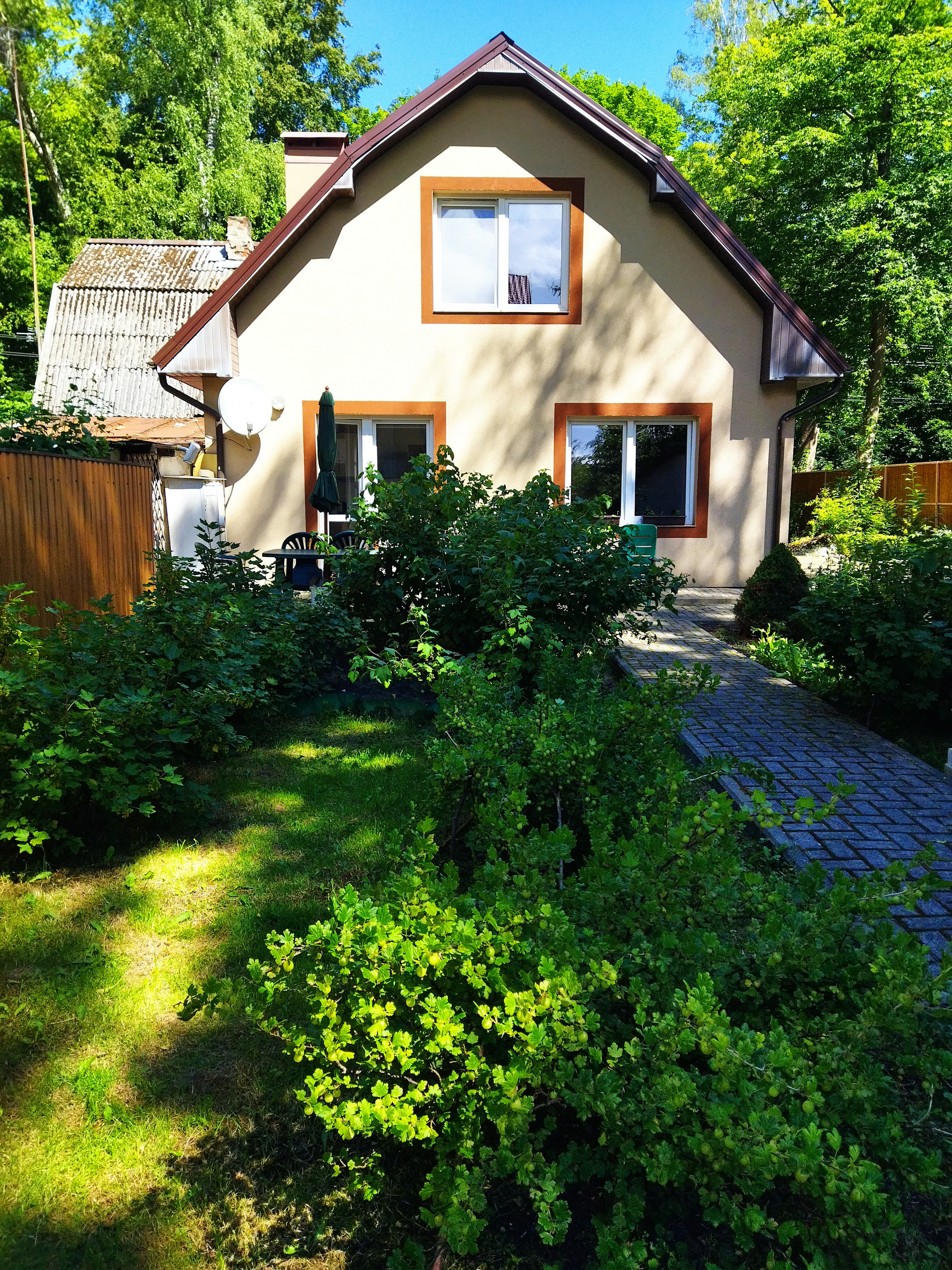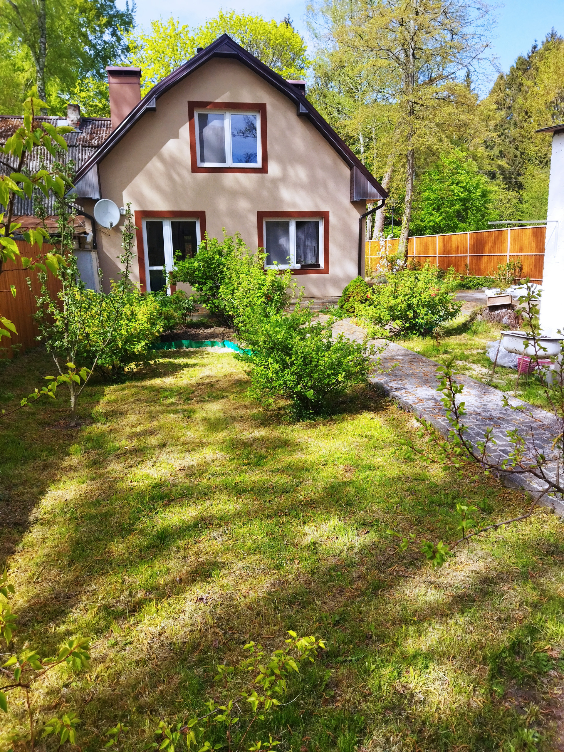 Продаётся обособленная половина дома = 95м2, 2014г., 2 этажа, 3 комнаты (13.8/ 15.4/ 17,2), кухня 11 м2 с выходом во двор, 2 санузла, гардеробная (7.6) +2 больших места хранения ( в подкрышных выступах). Первая линия от моря в г. Светлогорск, р-н Отрадное. Земля 35% в собственности. Участок огорожен, уложена плитка, растут ягодные и декоративные кусты. Гараж 42 м2. Отопление - твердотопливный котёл, электрический котёл; газ балонный. Возможность подключения к газу имеется. Соседи - 1 чел. Возможна продажа всего дома 100% = 152,4 м2 с участком 922 м2 в собственности.)