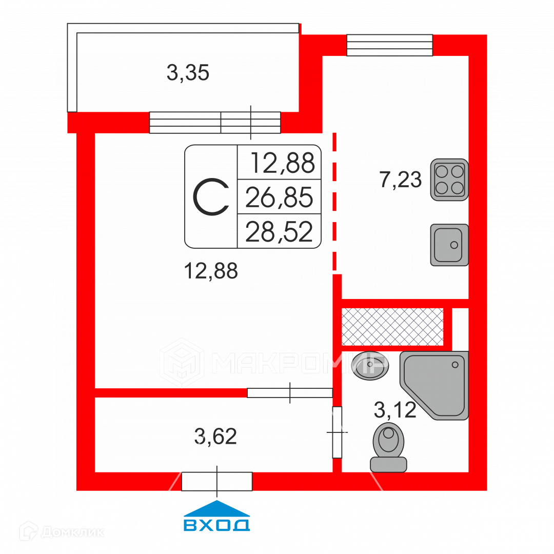 санузел 3,12 кв.м.;