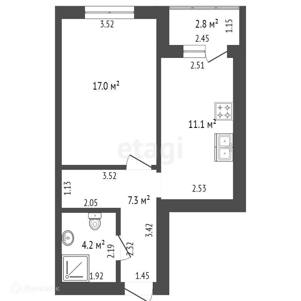 Общая площадь 39.6 м2