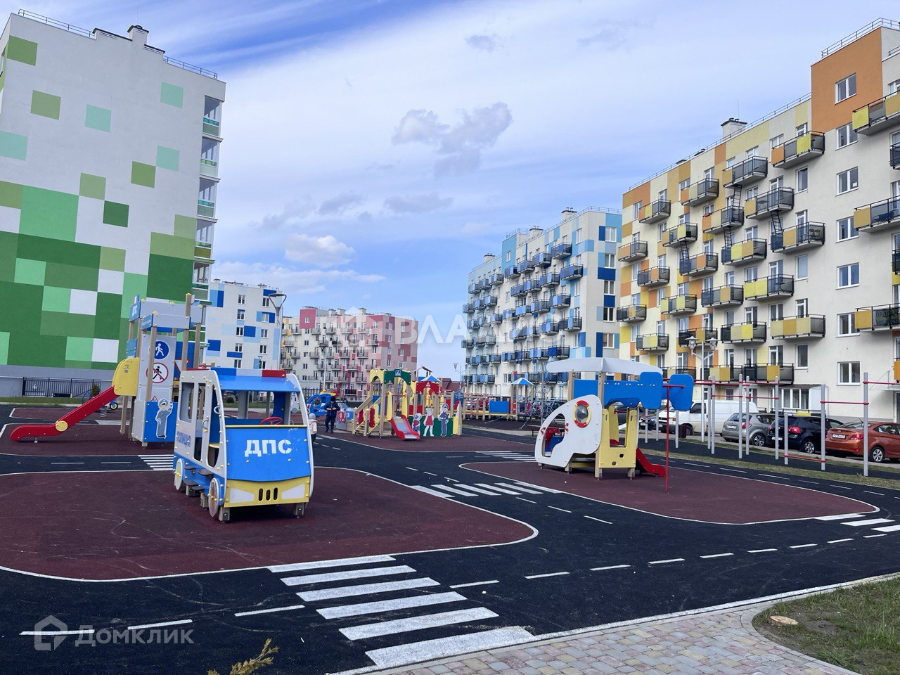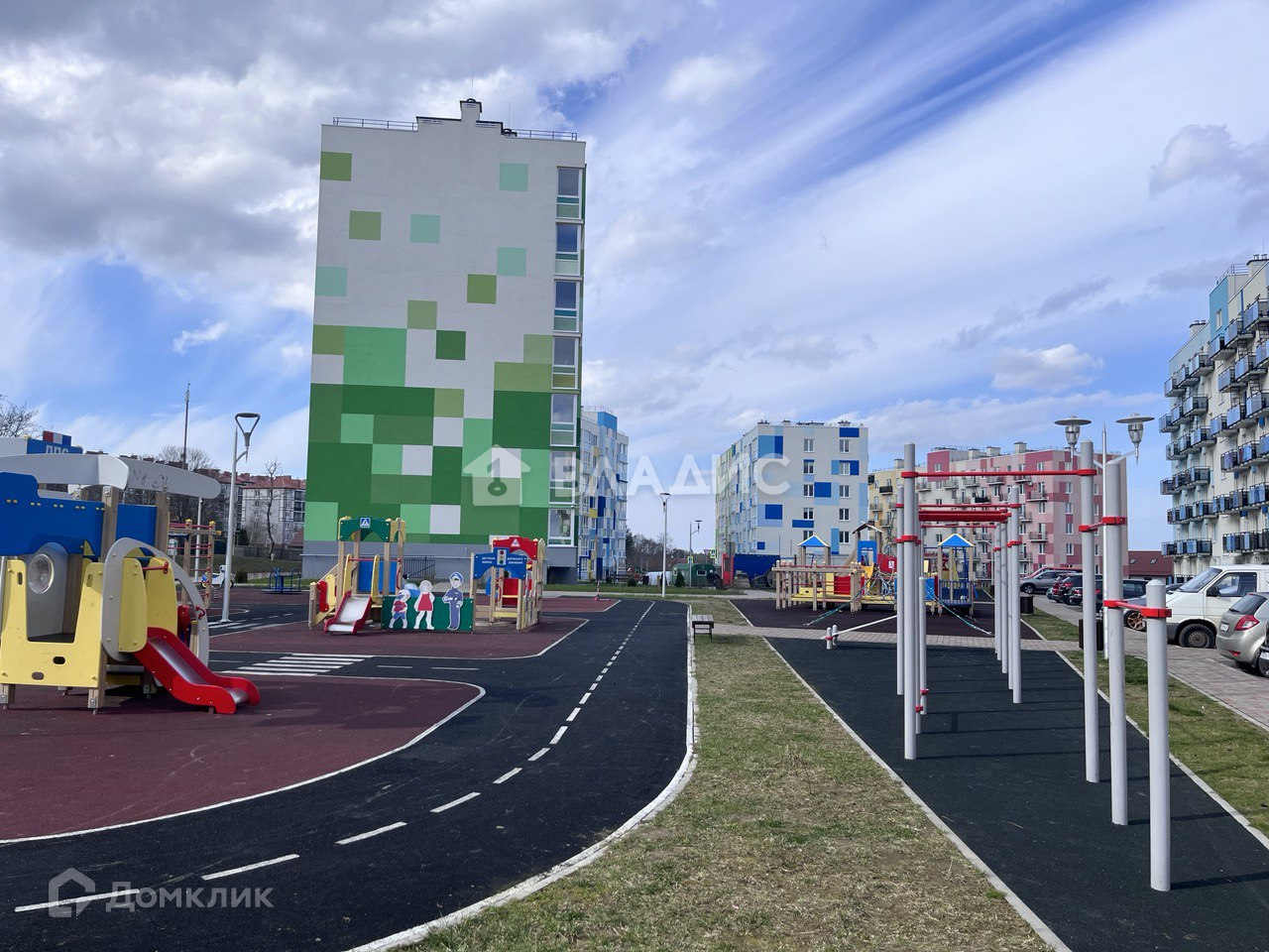 Территория дома полностью благоустроена и предлагает множество удобств. Для детей оборудованы различные игровые и спортивные площадки. Кроме того, предусмотрены парковочные места. В подъезде предусмотрено место для хранения колясок, велосипедов.