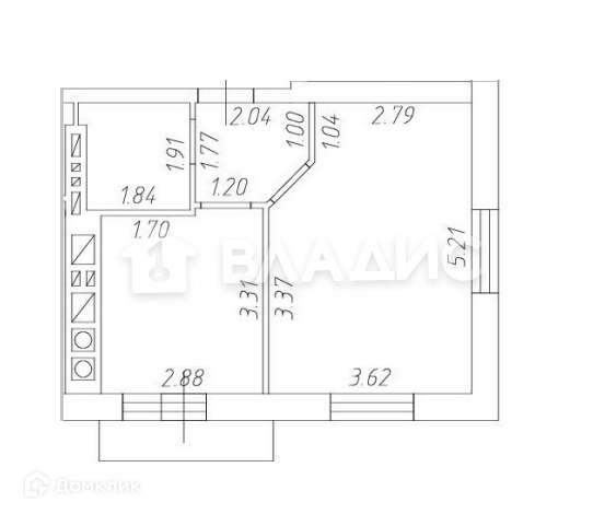 Общая площадь квартиры - 36 кв.м