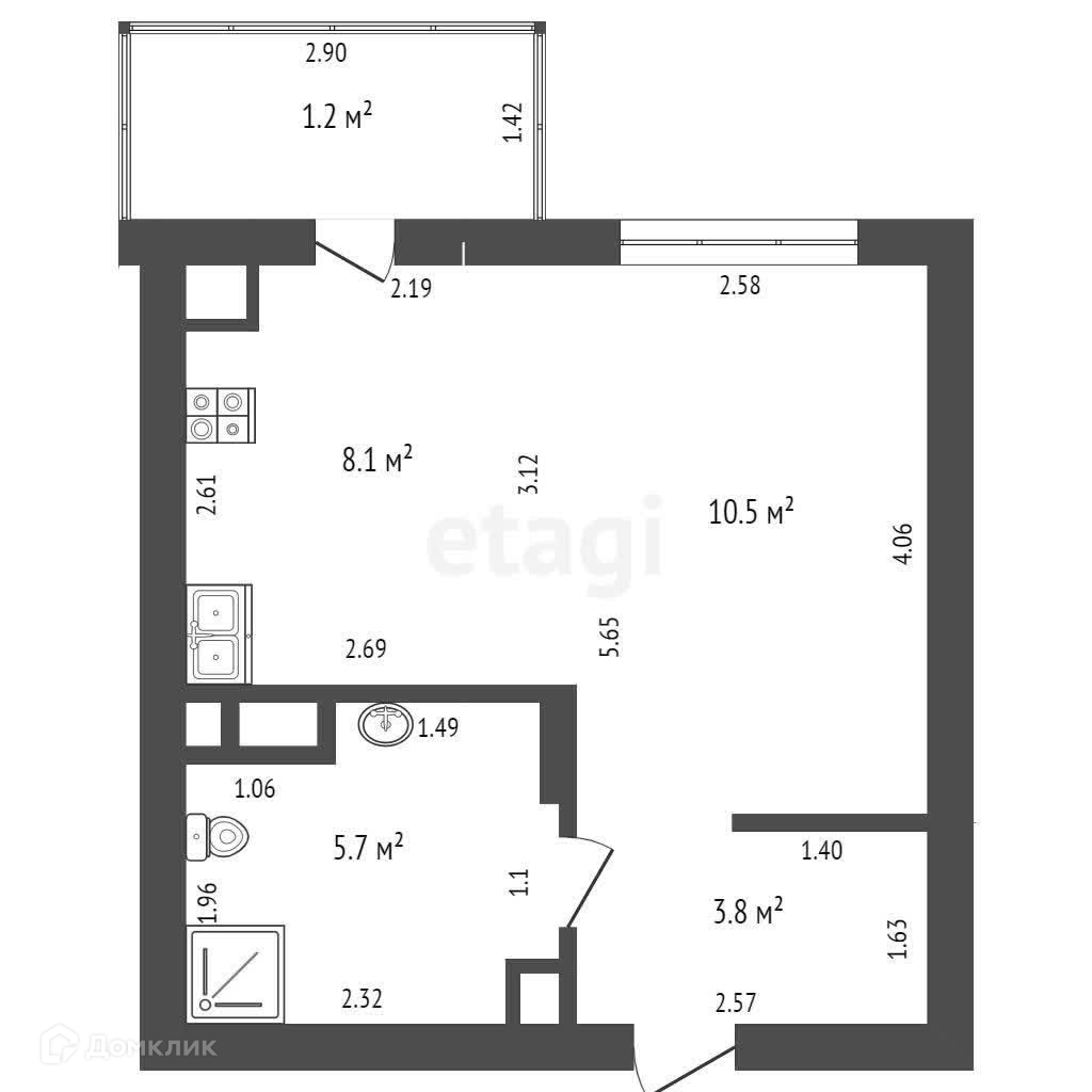 ● общая площадь квартиры без учёта холодных помещений (по документам) - 28.1 кв.м.