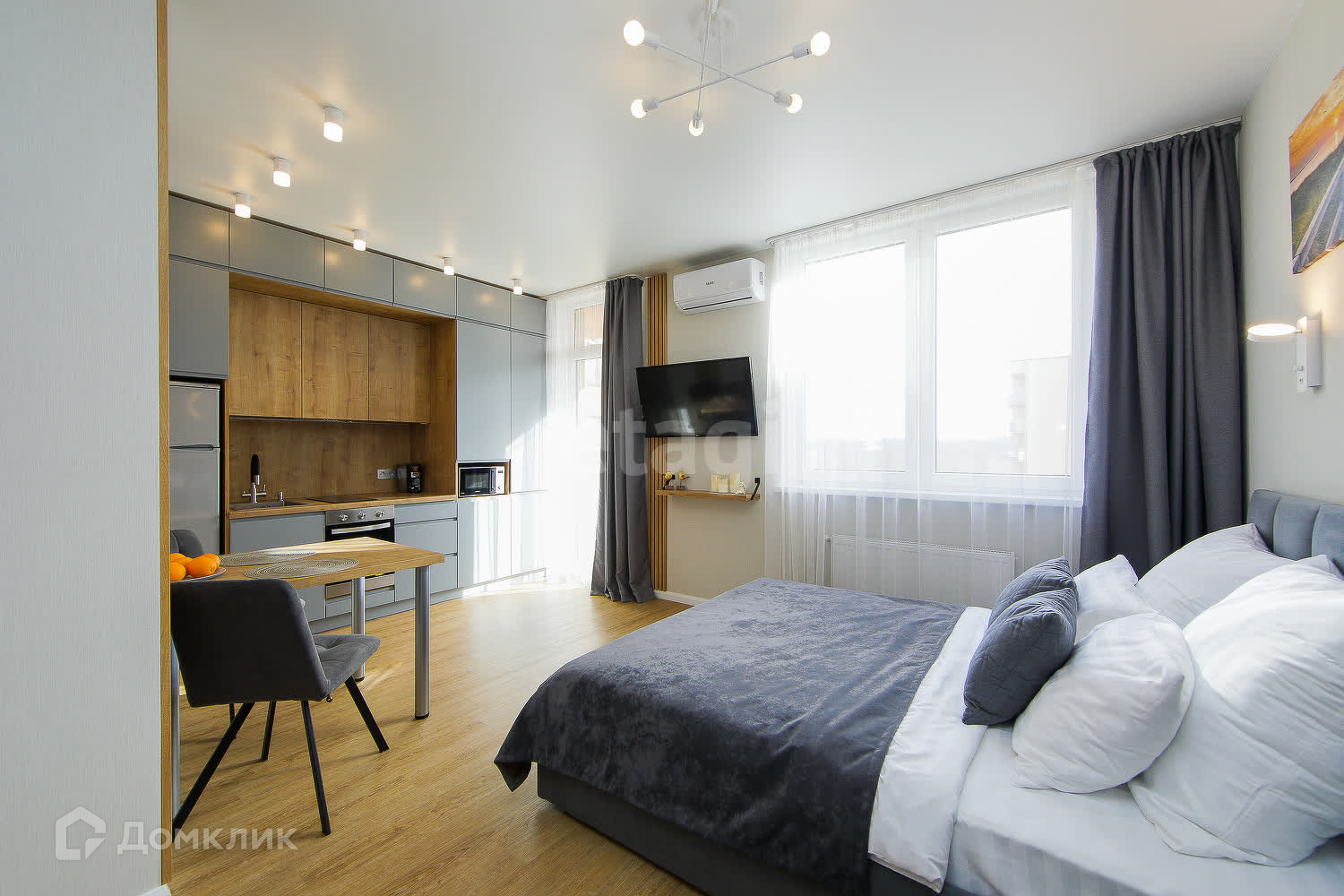 ● вся мебель и техника которую вы видите на фото остаются новым хозяевам квартиры: 2-х спальная кровать с подъемным механизмом, комфортный диванчик (раскладывается), встроенная кухня, индукционная поверхность, духовой шкаф, вытяжка, холодильник, СВЧ печь, обеденный стол, мягкие стулья, кондиционер, телевизор, гардеробная зона