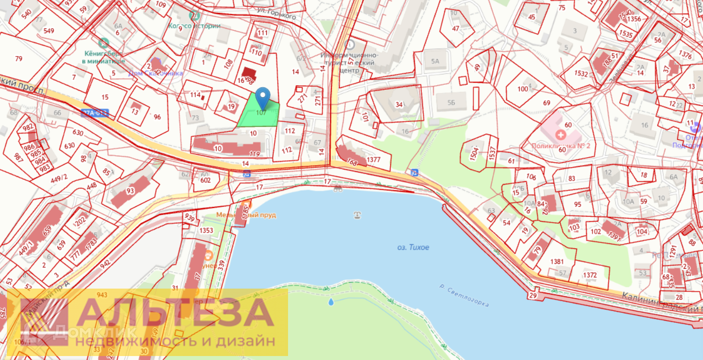 Светлогорск 2, 13 сот., Земля в аренде, Пустой, Рядом озеро, 39:17:010018:107, электричество-есть возможность подкл., газ-нет, водоснабжение-есть возможность подкл., канализация-есть возможность подкл.,, Светлогорск г, Калининградский проспект 71А, продается участок, 13 соток, Номер лота: 4213987