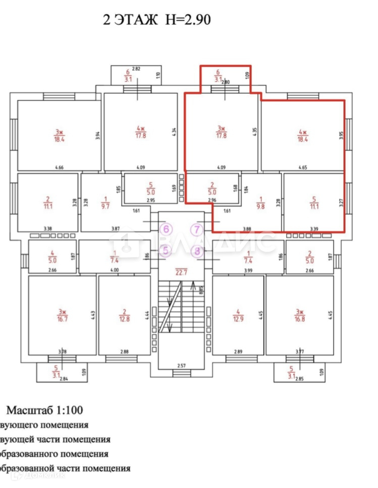Общая площадь 62.1 м2