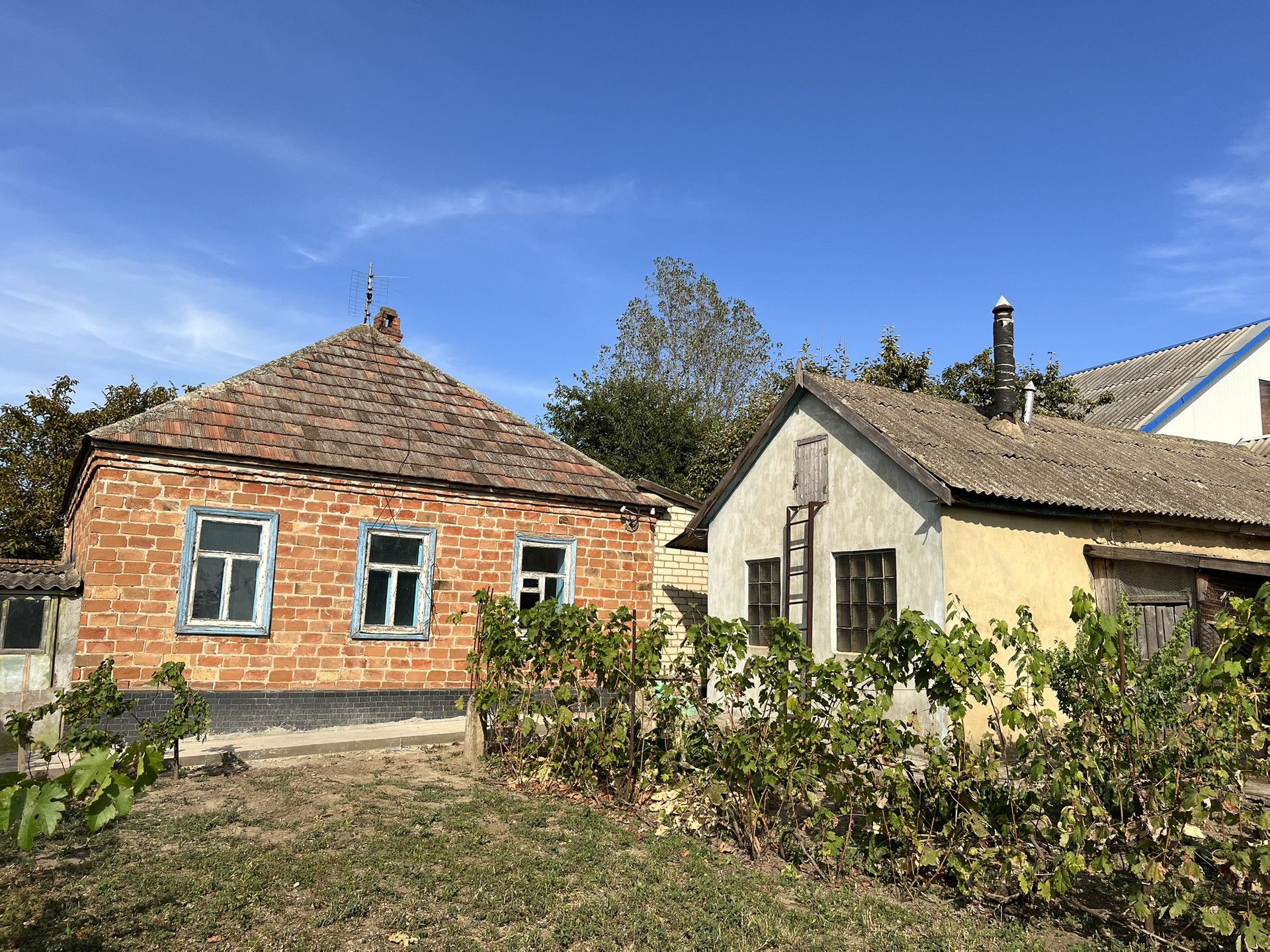 Срочно продается дом S=48,5 кв.м с земельным участком 8 соток в центре города. В шаговой доступности школа (200 м), детский сад (300 м), продуктовый магазин (150 м). На участке располагаются  хоз.постройки, гараж, погреб, кухня+ванна отдельно, виноградник.