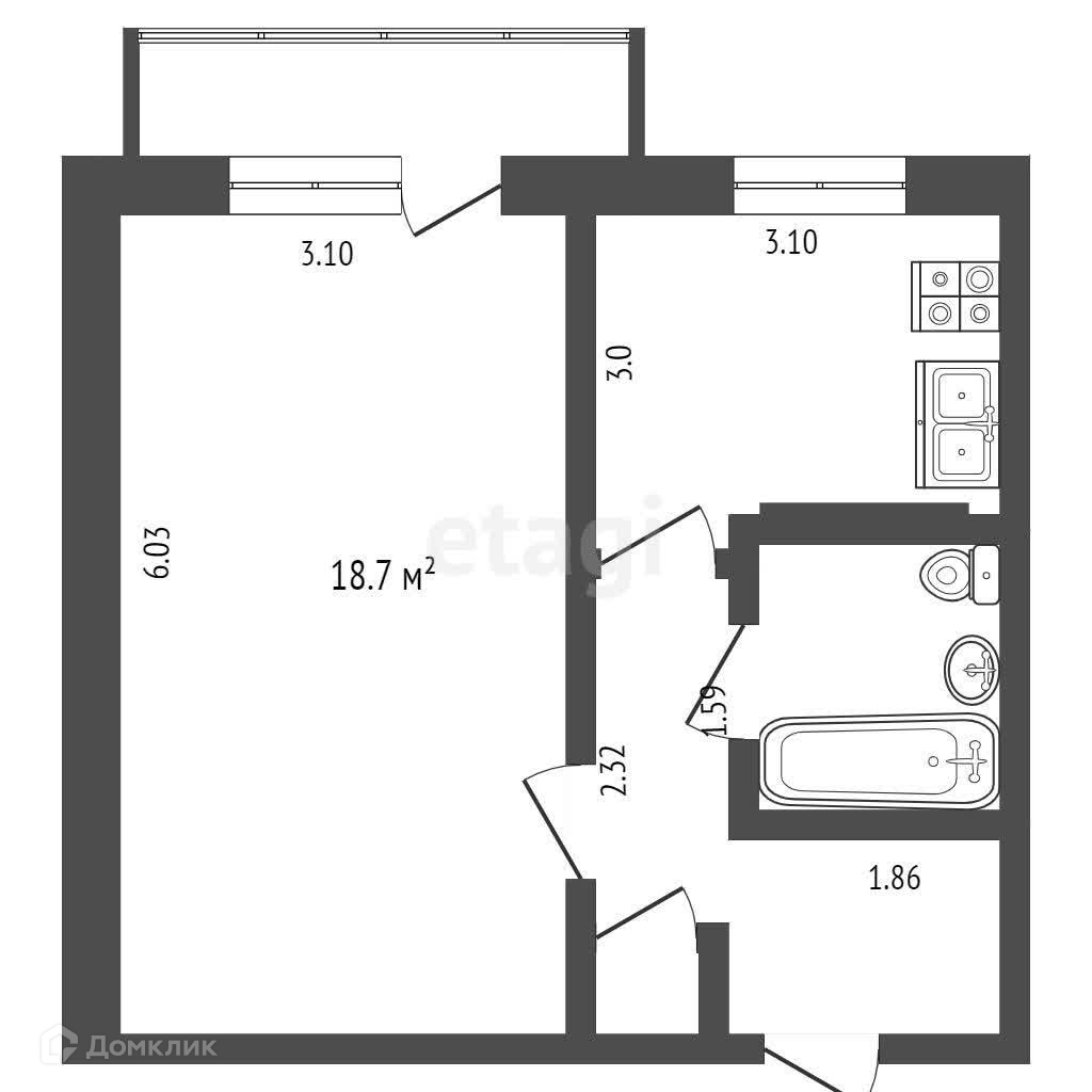 Общая площадь 60 м2