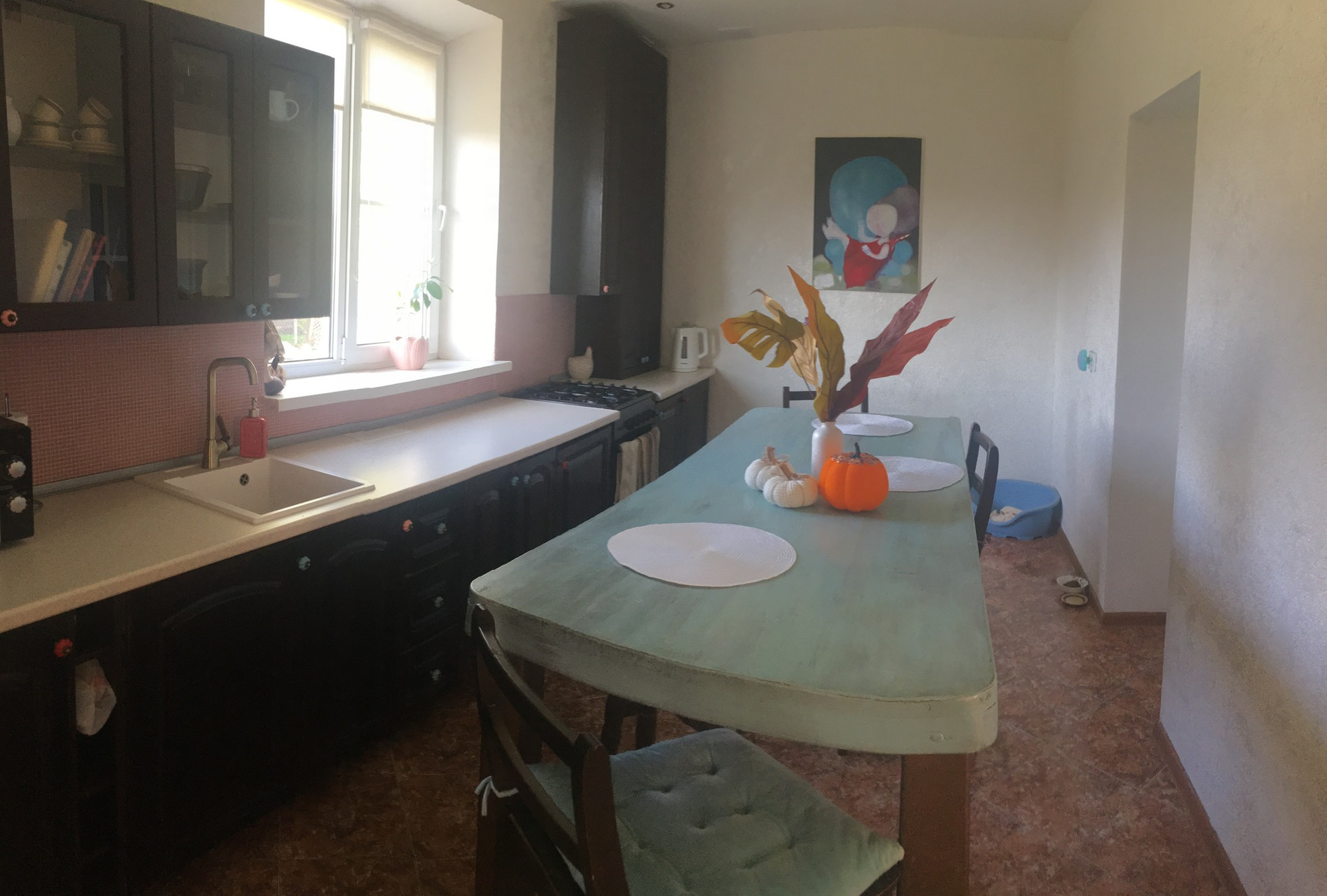 Дом расположен в тихом, удаленном от дороги месте. Хороший ремонт, новое отопление, теплый пол. Летняя кухня. Гараж, подвал,  беседка. Много земли для выращивания или для фермерства. Скважина с водой для полива. В шаговой доступности школа, магазины, остановки.