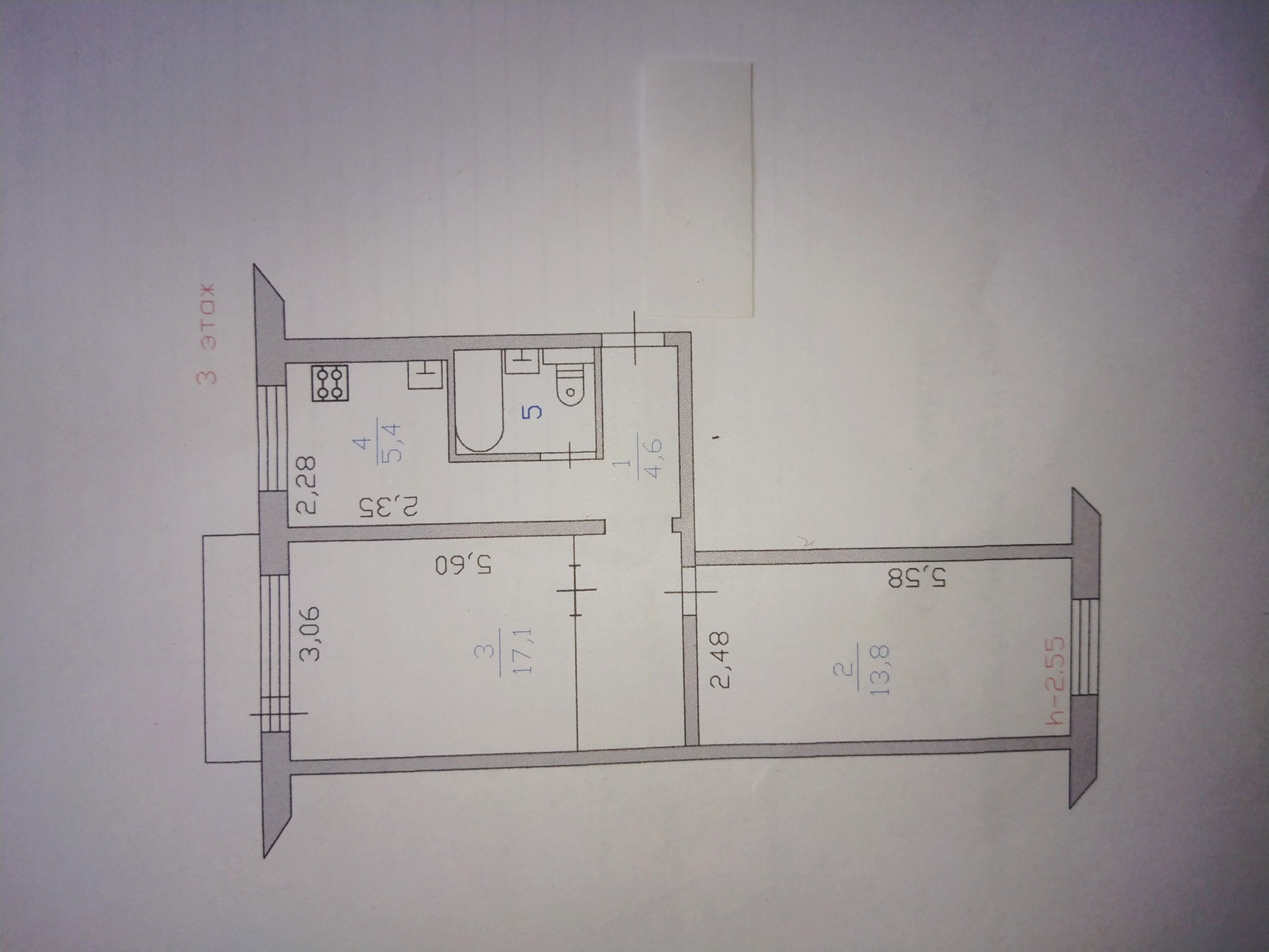 Высота потолков 2.55 м