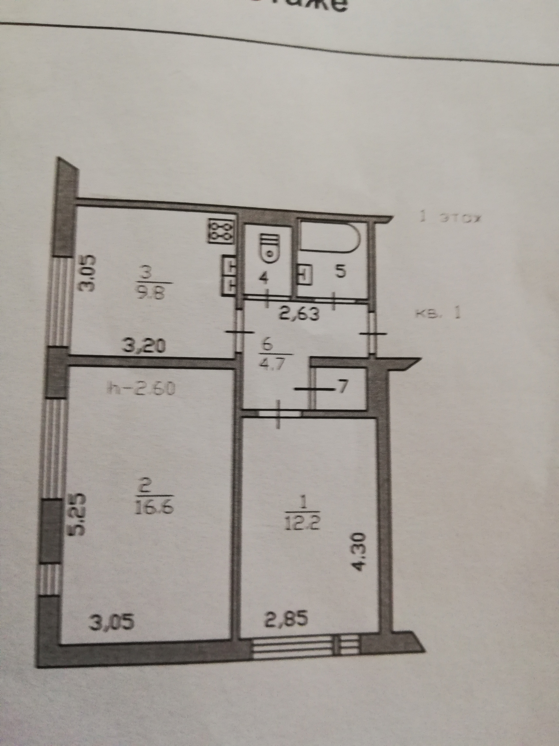 Площадь квартиры 47,4м2. Комнаты изолированные 12,2м2 и 16,6м2. Просторная кухня 9,8м2. Санузел раздельный. Небольшая удобная кладовка, вместительная антресоль.