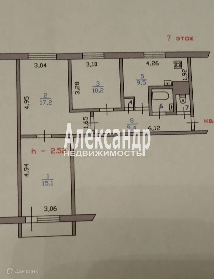 Высота потолков 2.52 м