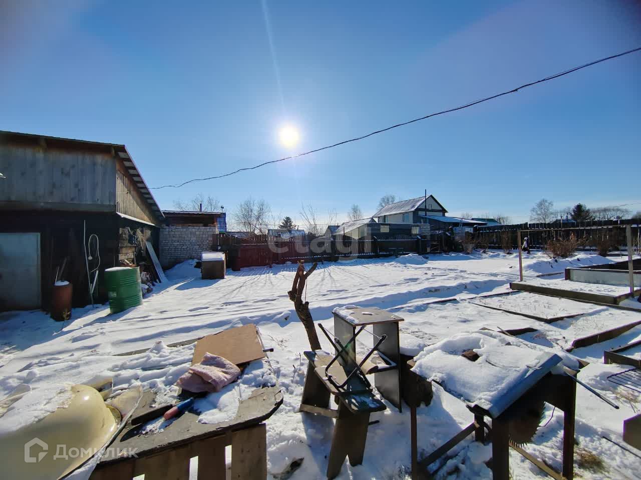 Площадь участка составляет 5,6 соток. Земля разработана, плодородная. Есть надворные постройки: гараж, летняя кухня,и теплая кухня из бруса, сарай, дровник. Также есть баня.