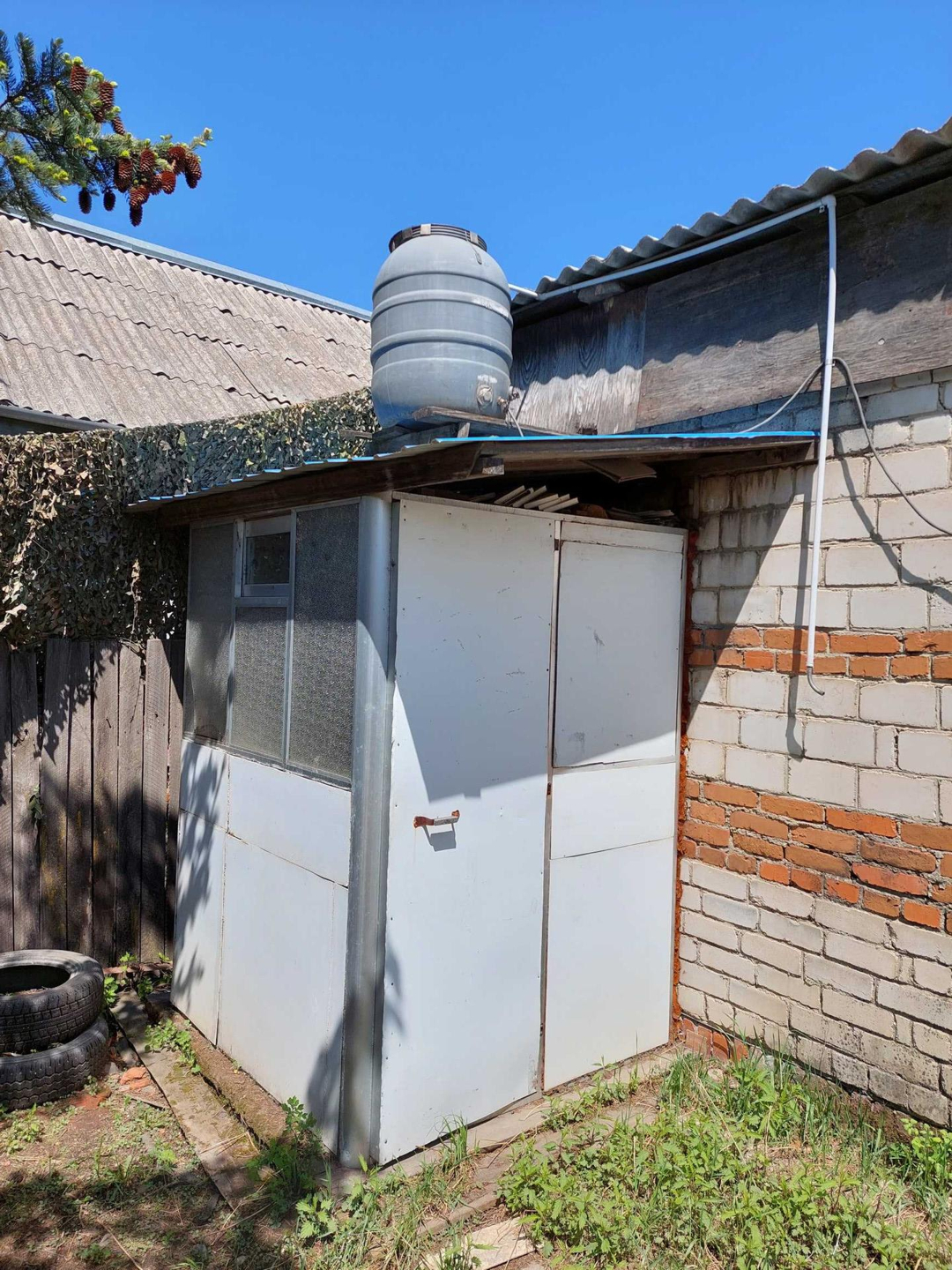 - Кабинка для душа в тёплое время года с электроподогревом воды;