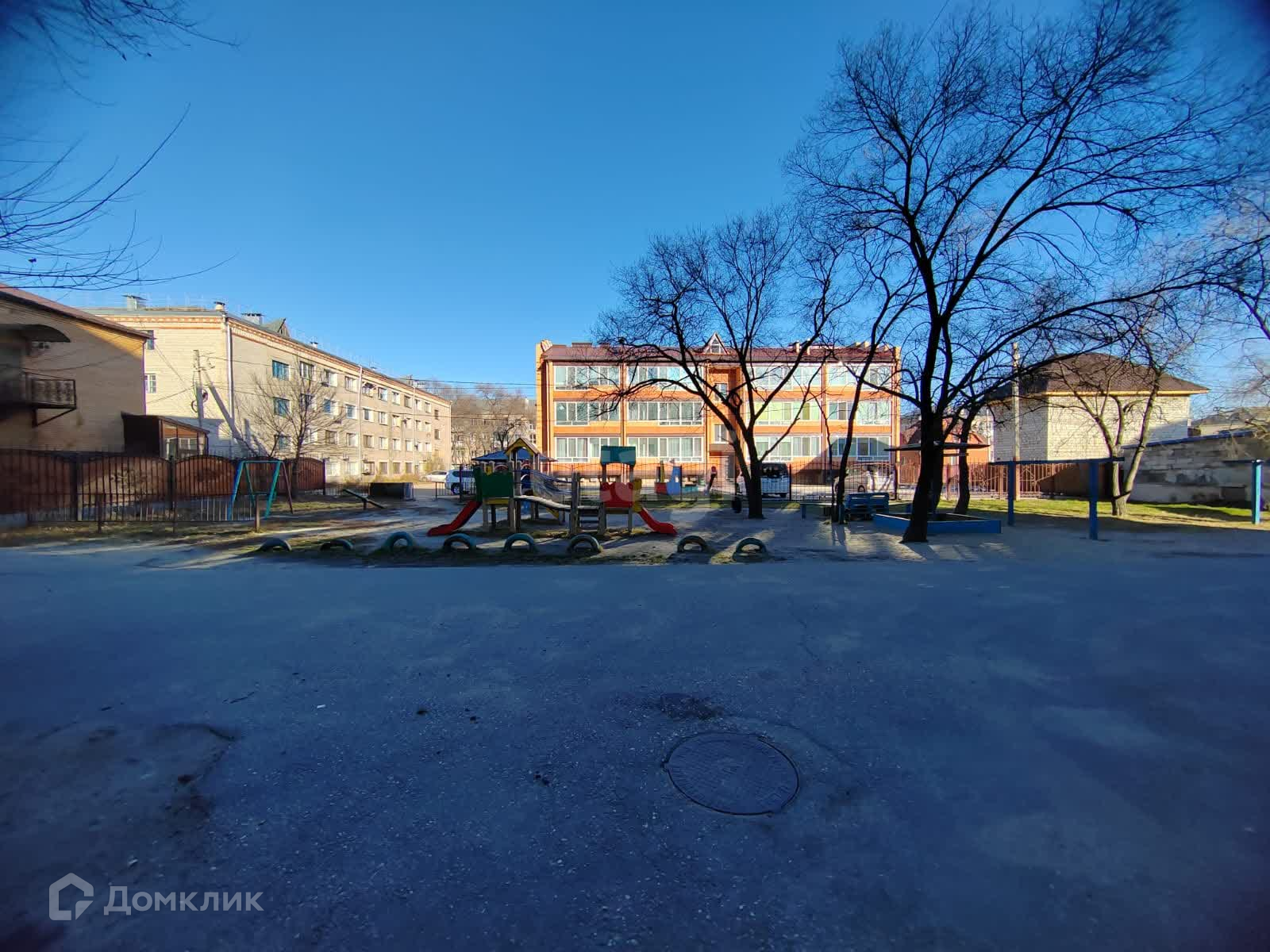 Во дворе - обустроенная детская площадка.
