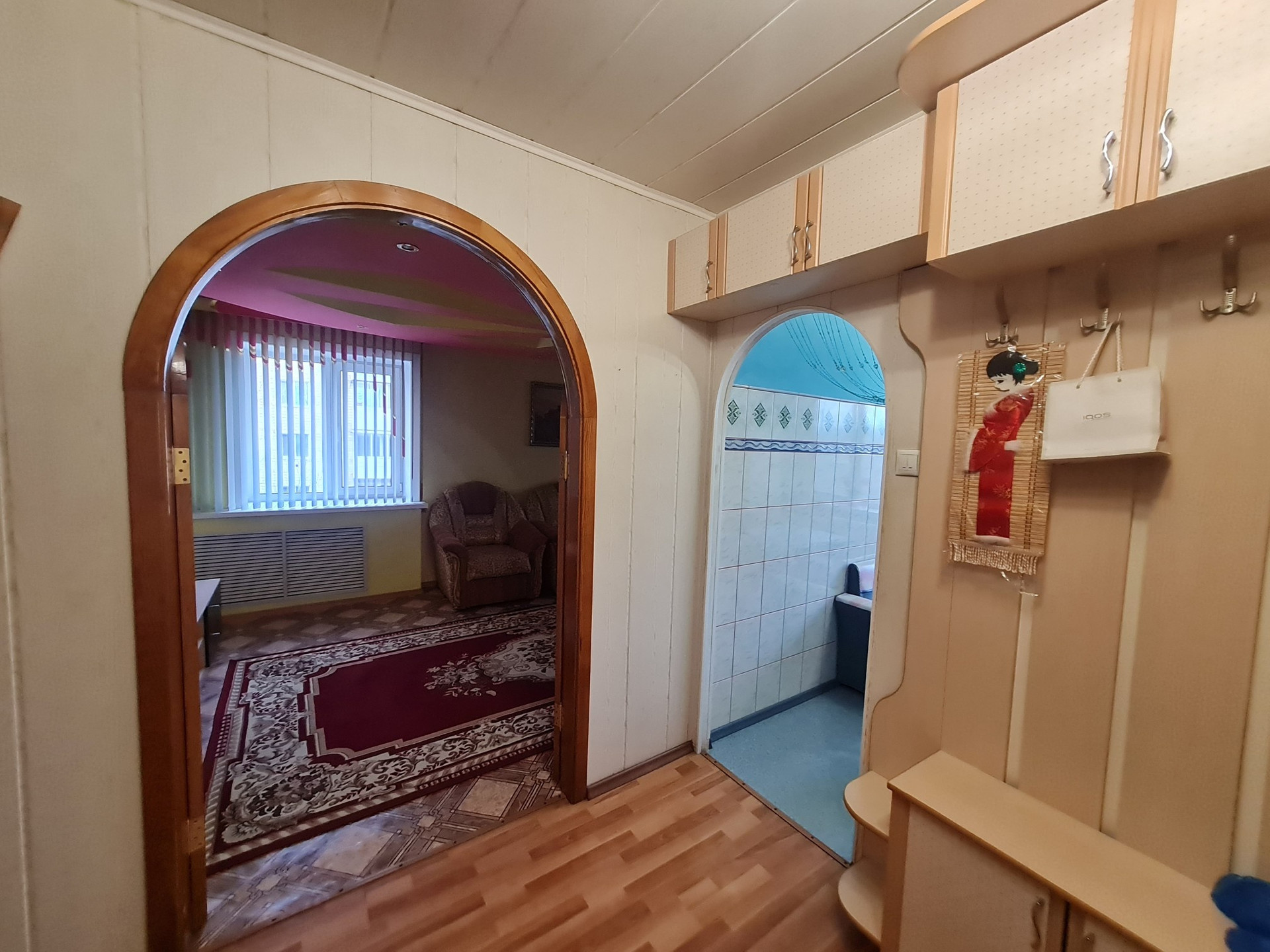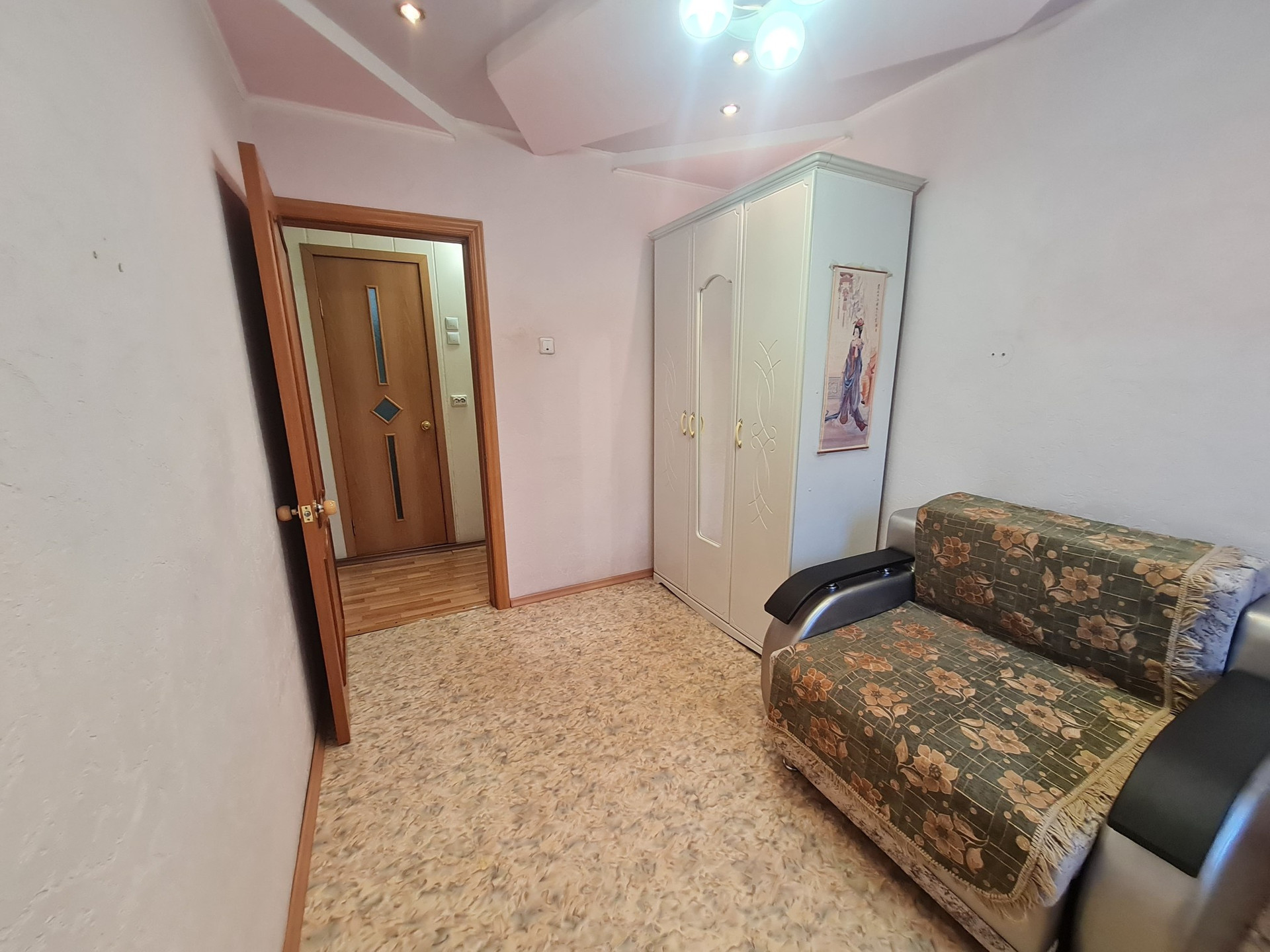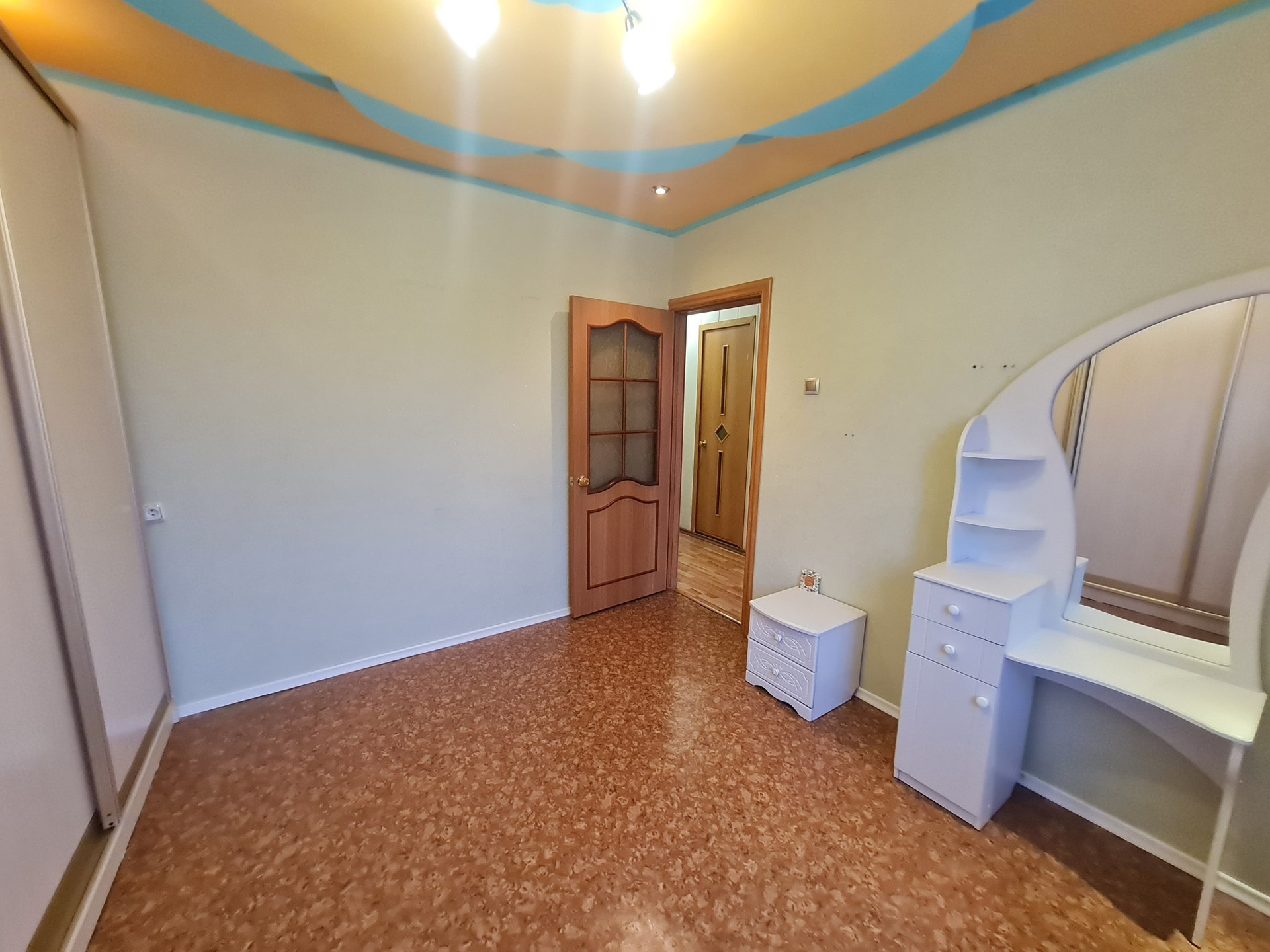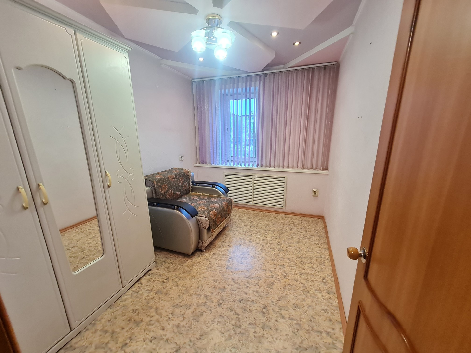 С.у раздельный,отделка кафель. На полу линолеум и частично ламинат,потолки из гипсокартона.На кухне пластик. Двери межкомнатные деревянные покрыты лаком. Все в шаговой доступности:д.сад,гимназия 9,поликлиника,магазины,библиотека,кафе,остановки .Все документы готовы,любая форма оплаты,подходит для ДВ ипотеки,более 3х лет в собственности