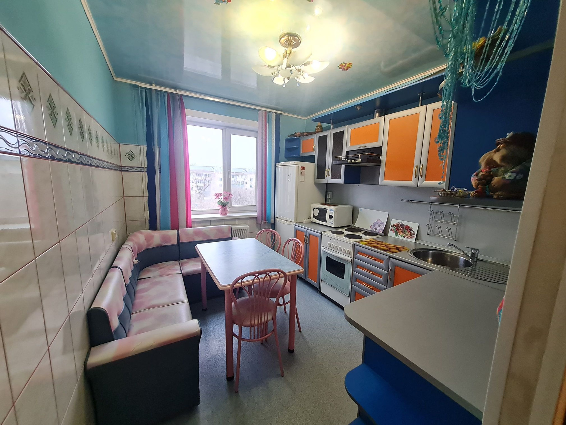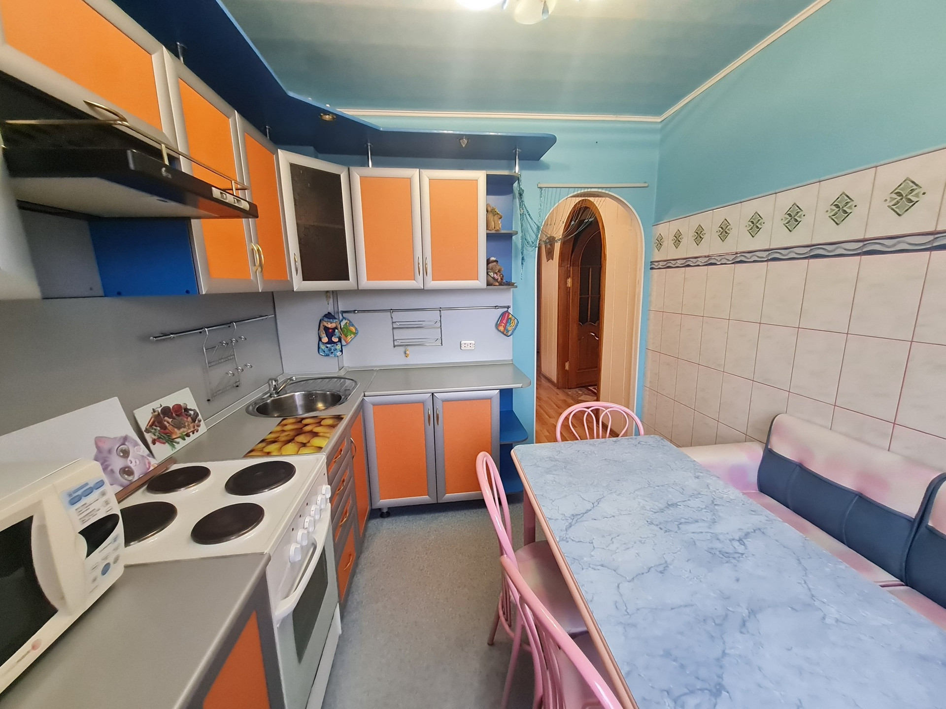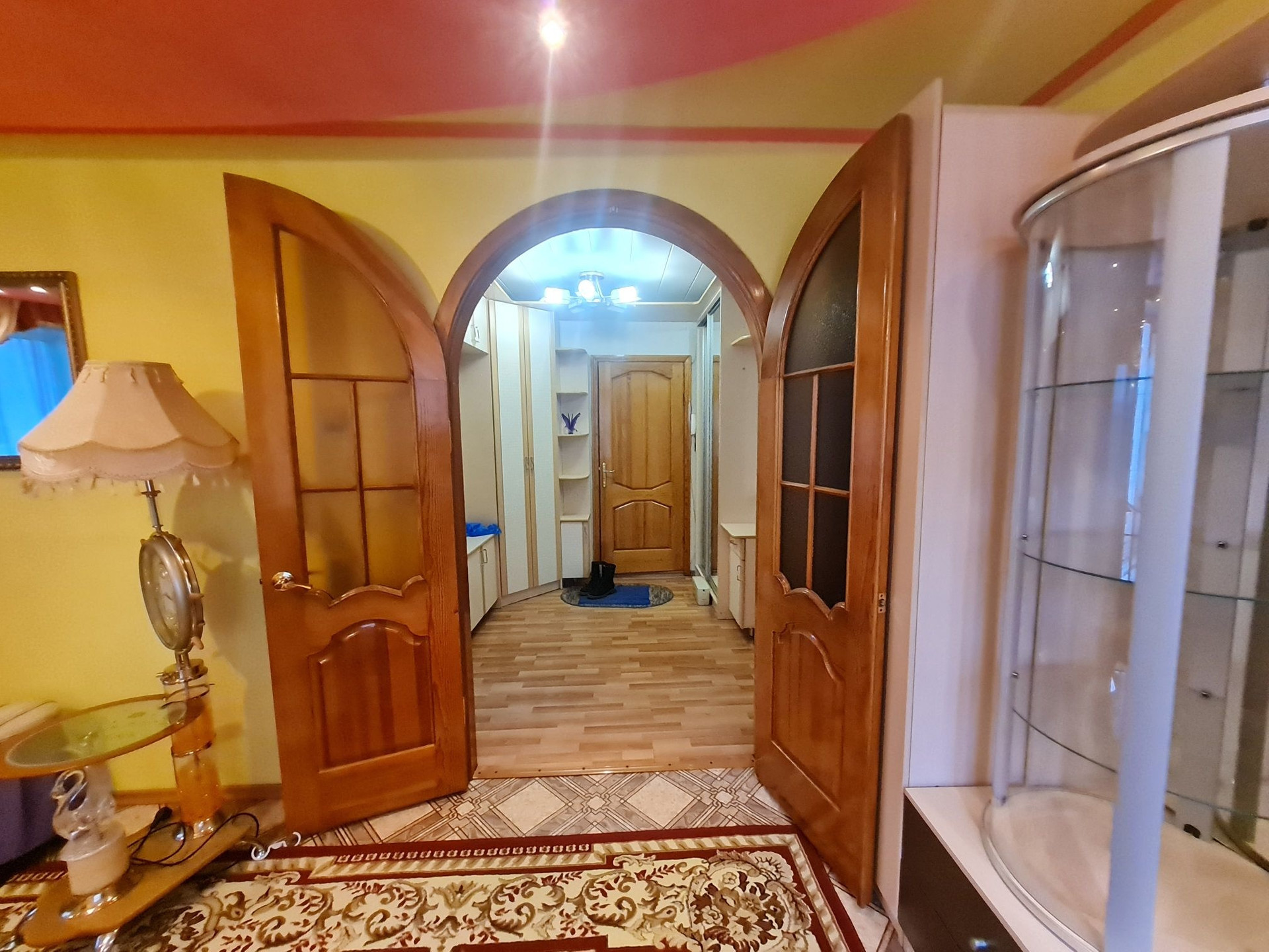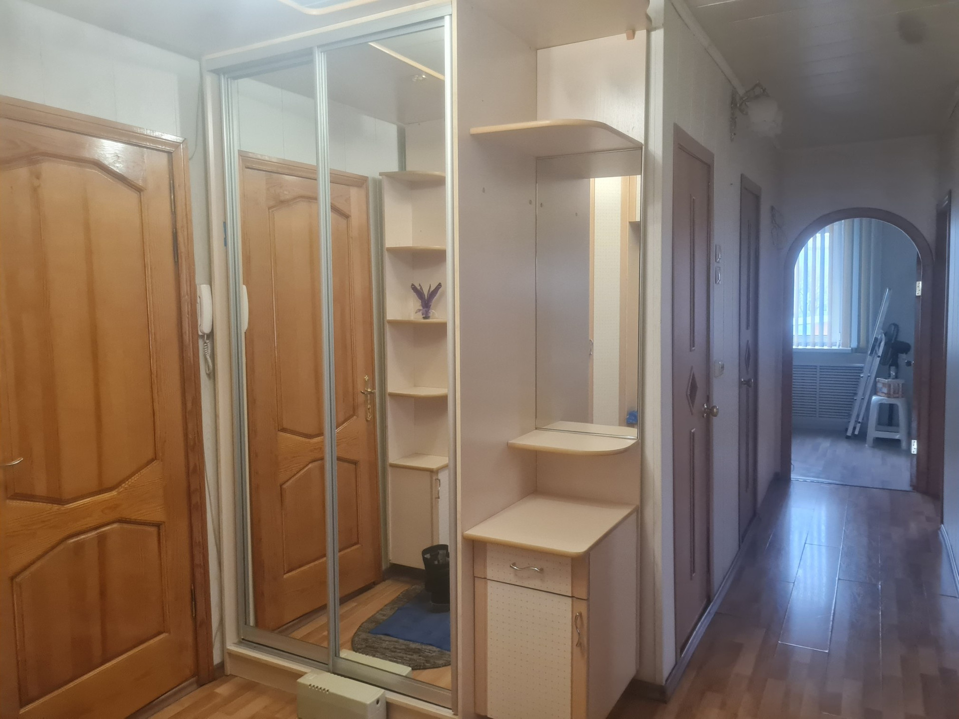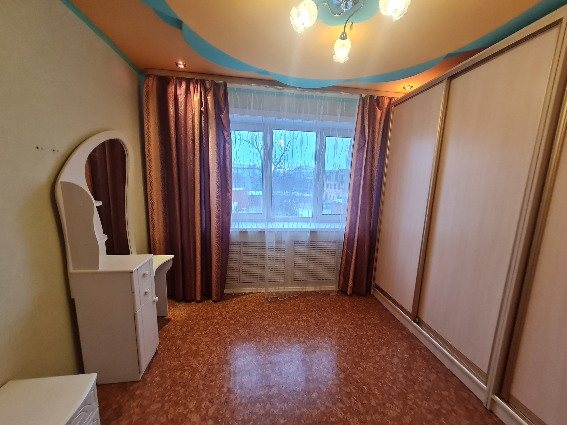 С.у раздельный,отделка кафель. На полу линолеум и частично ламинат,потолки из гипсокартона.На кухне пластик. Двери межкомнатные деревянные покрыты лаком. Все в шаговой доступности:д.сад,гимназия 9,поликлиника,магазины,библиотека,кафе,остановки .Все документы готовы,любая форма оплаты,подходит для ДВ ипотеки,более 3х лет в собственности