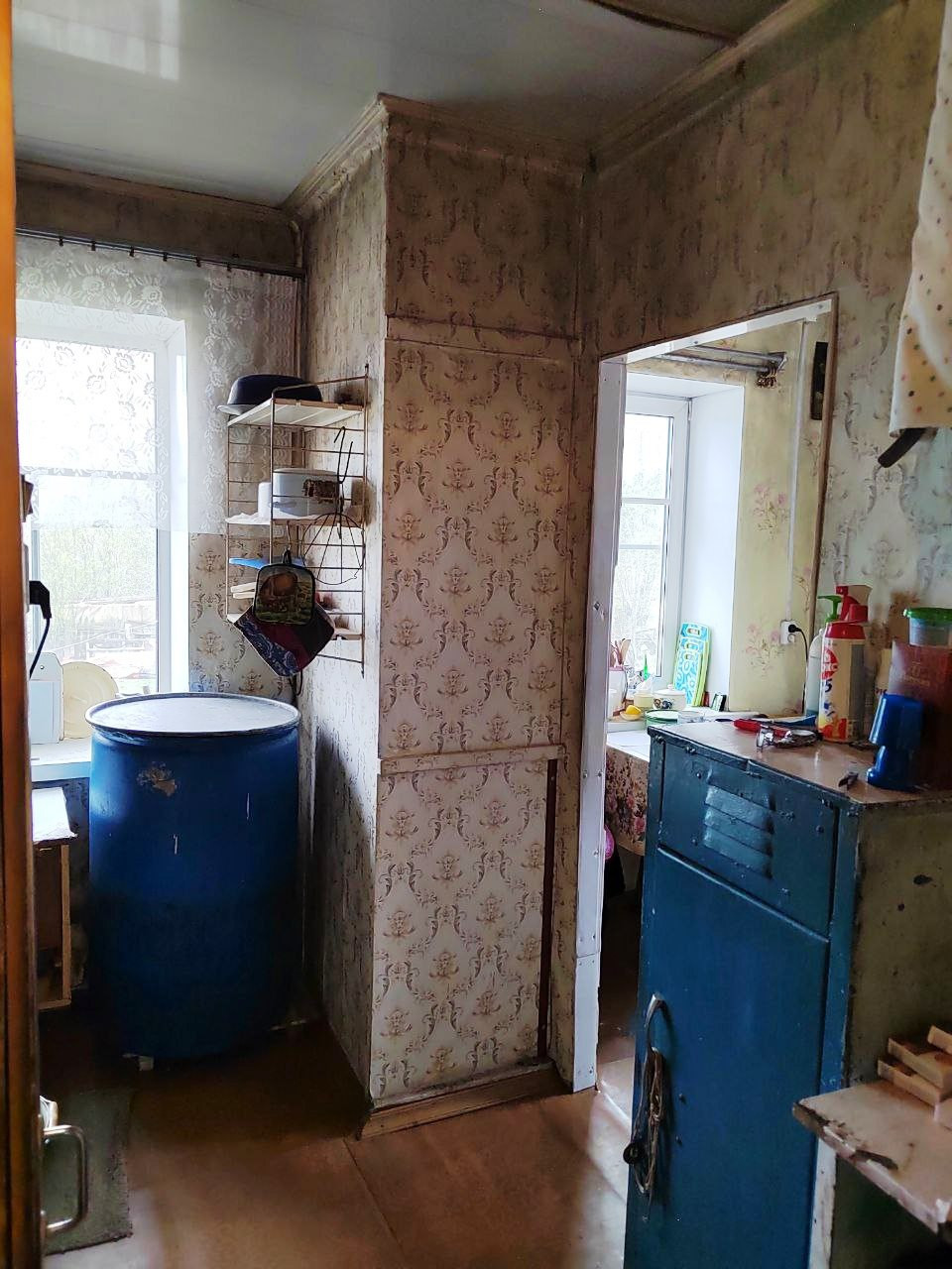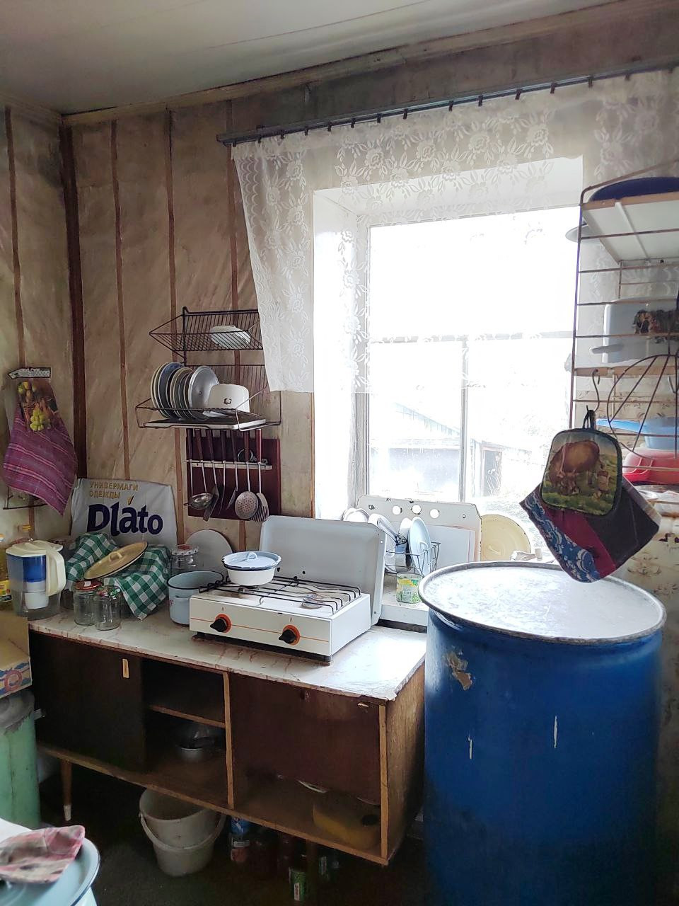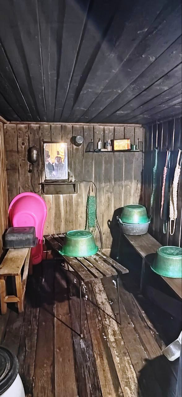 В доме предусмотрено помещение под сан. узел, есть бетонные кольца для устройства канализации.