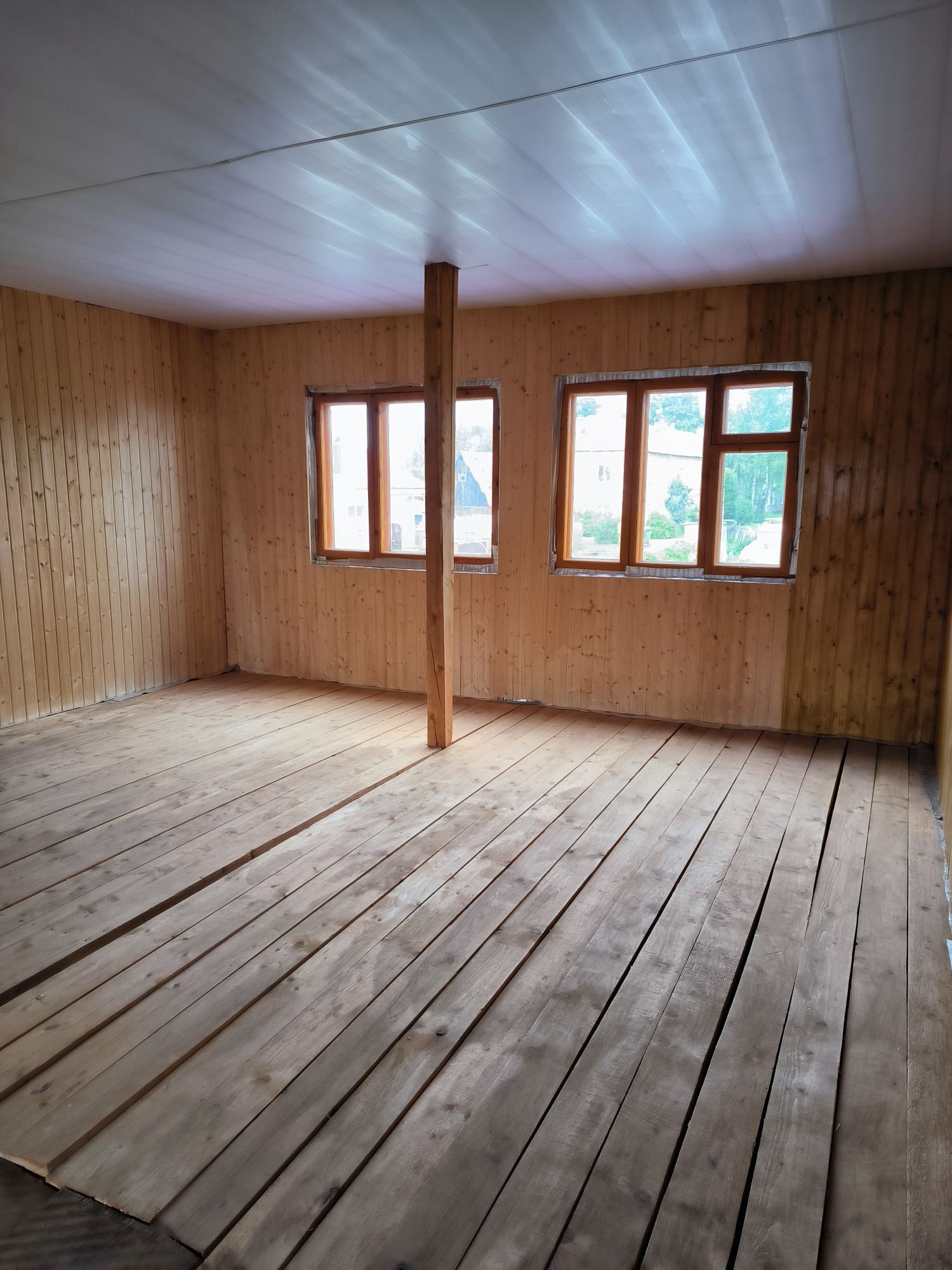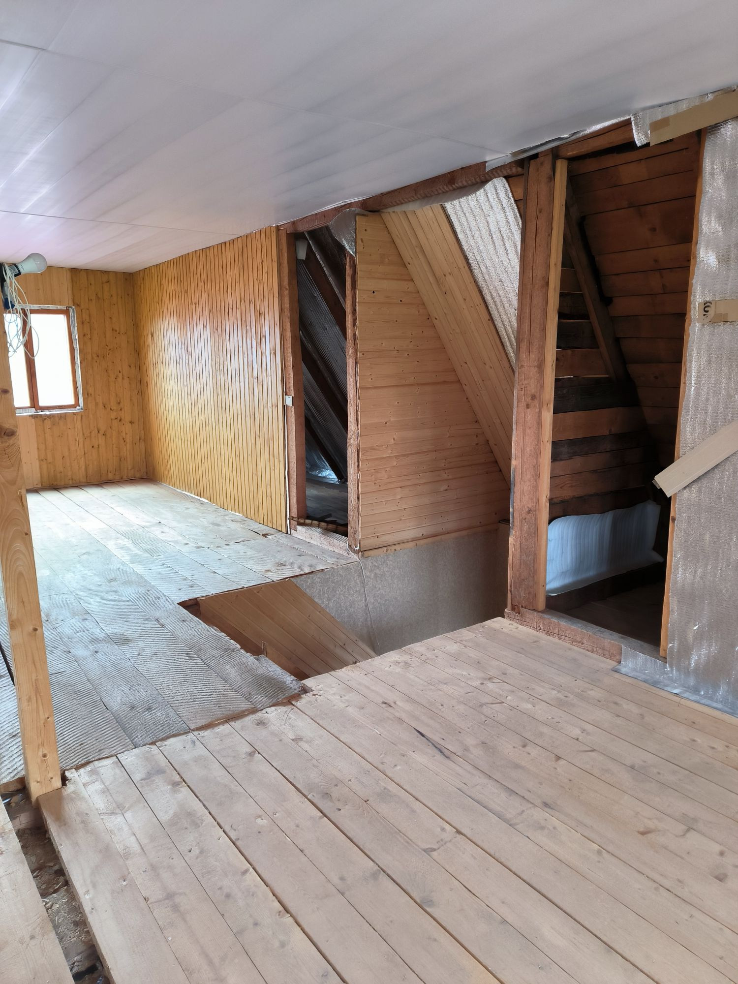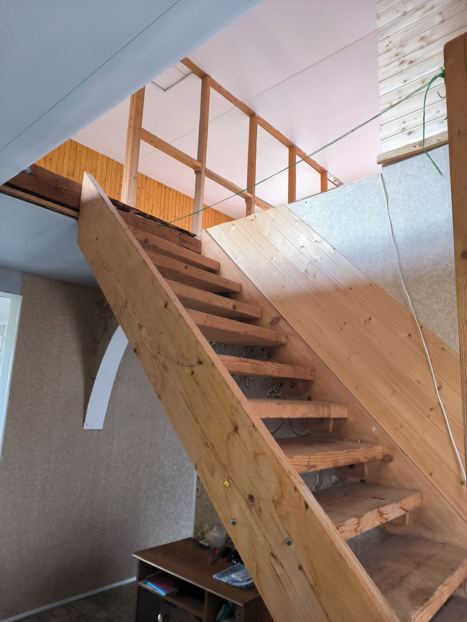 Второй этаж почти готов, отделка вагонкой, есть материал в запасе. Необходимо провести отопление на 2 этаж и установить проводку. Есть возможность сделать сан узел на 2 этаже.
