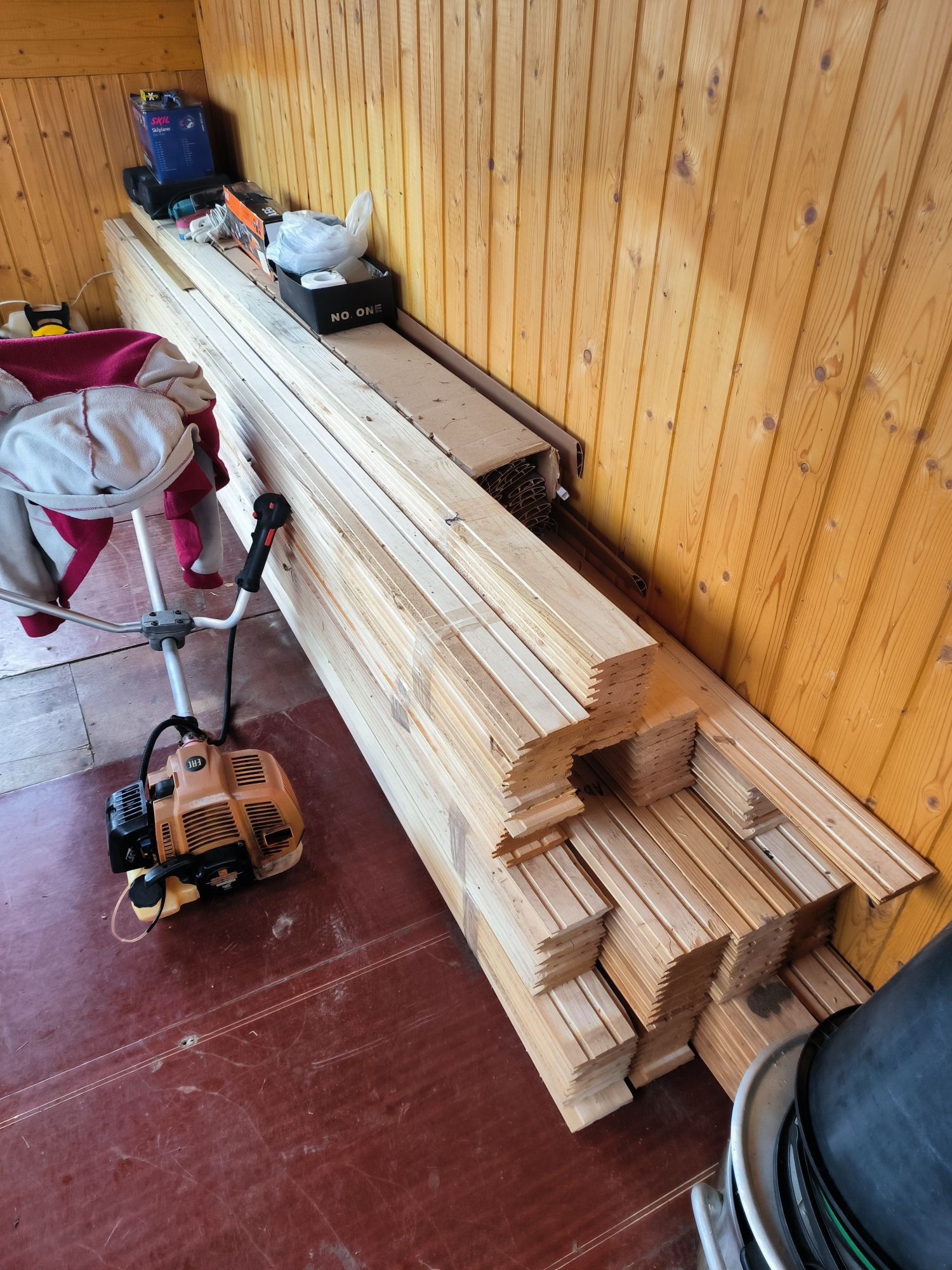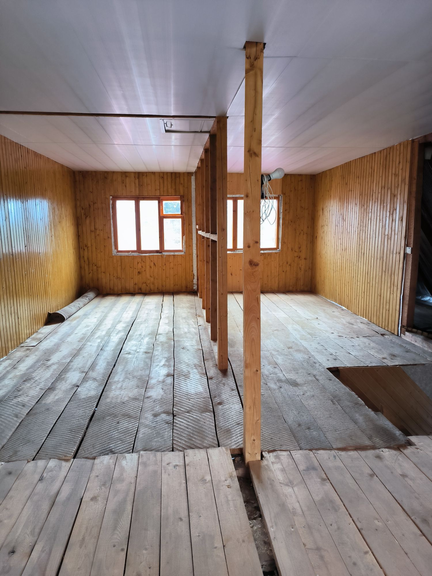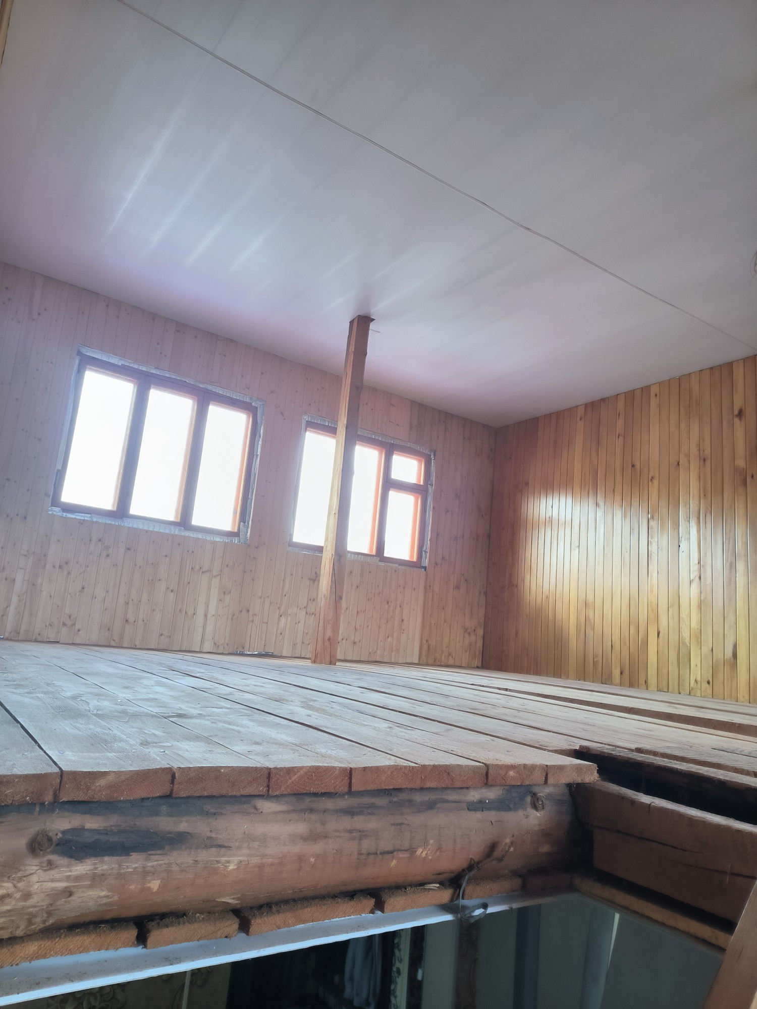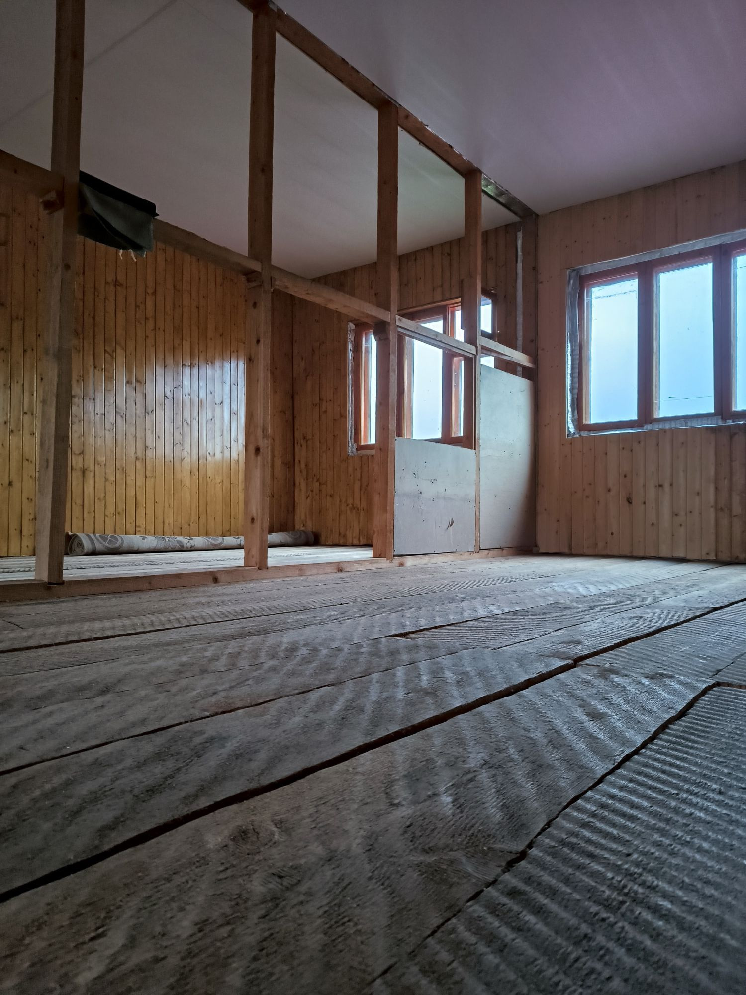 Второй этаж почти готов, отделка вагонкой, есть материал в запасе. Необходимо провести отопление на 2 этаж и установить проводку. Есть возможность сделать сан узел на 2 этаже.