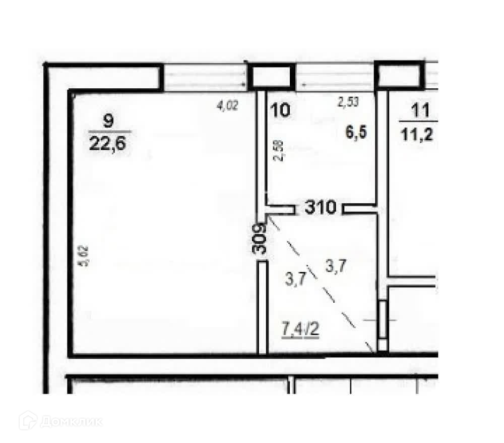 Общая площадь 36.5 м2