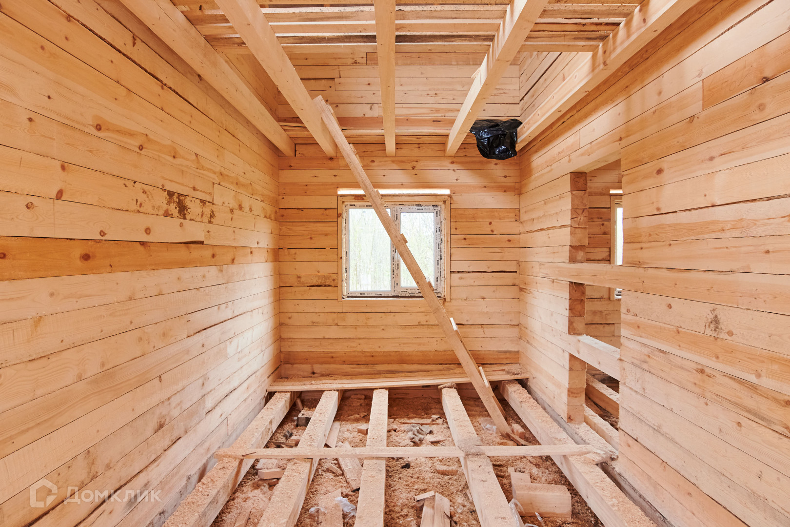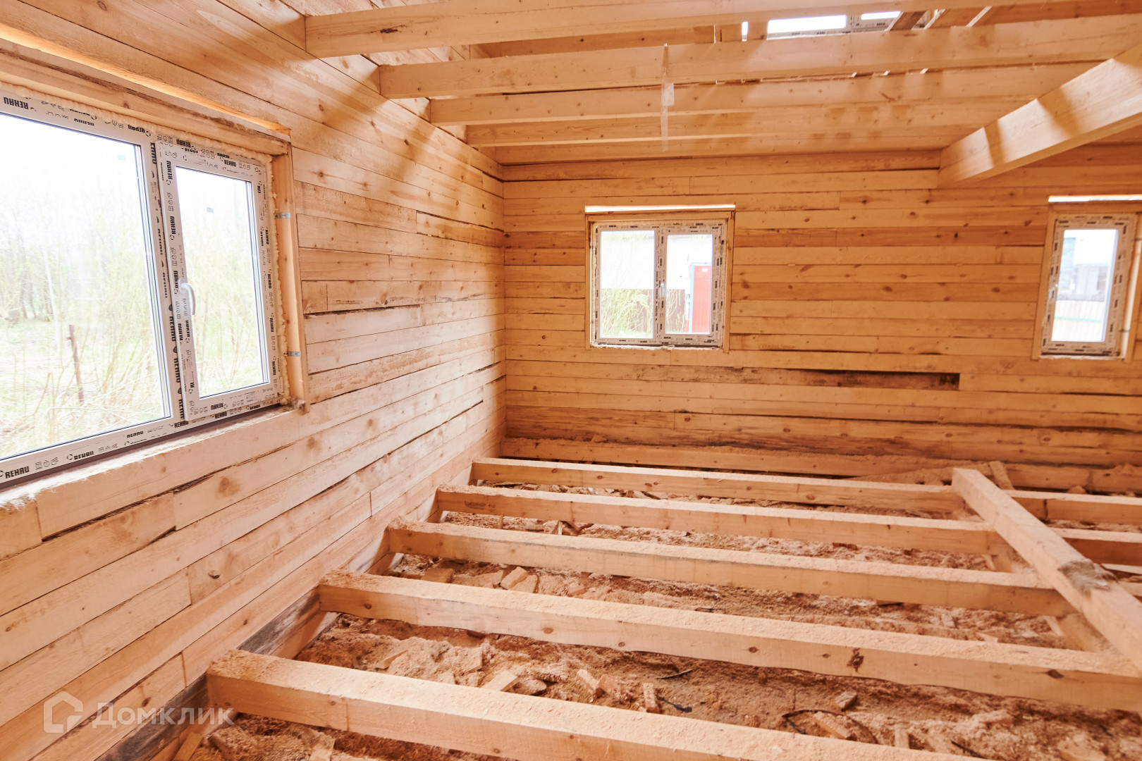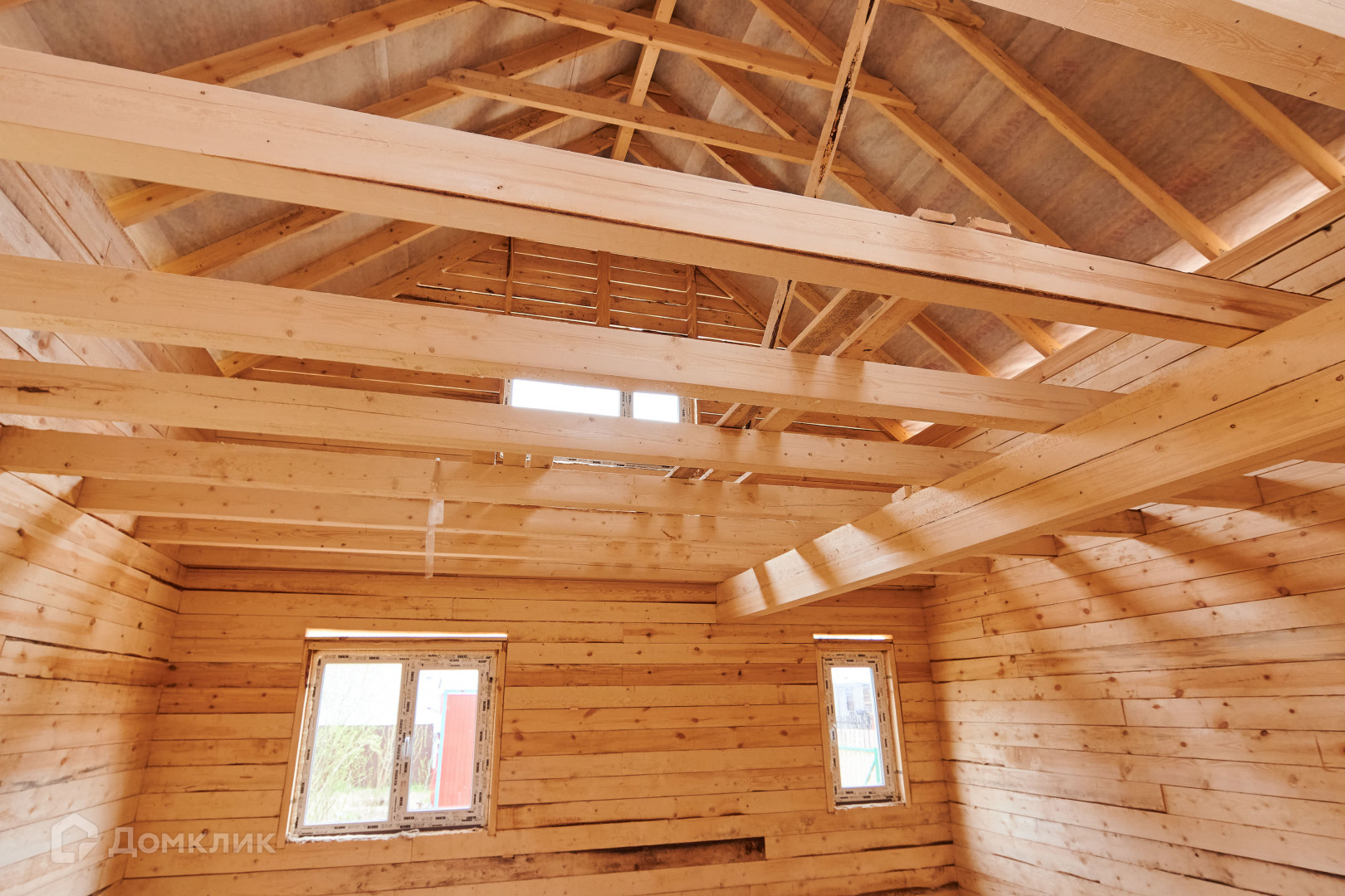 -Материал  брус 150\150.  Дом установлен на ленточном фундаменте,  возведен  под  крышу,     установлены  пластиковые окна, металлическая дверь