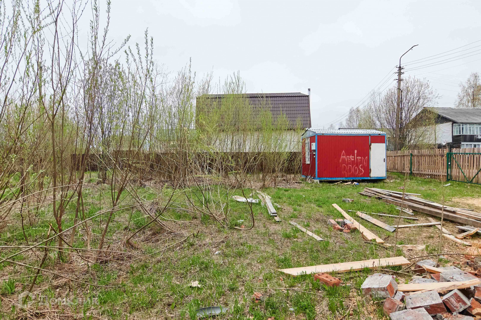 -Электричество заведено в  бытовку на участке. Рядом есть газ, канализация, вода