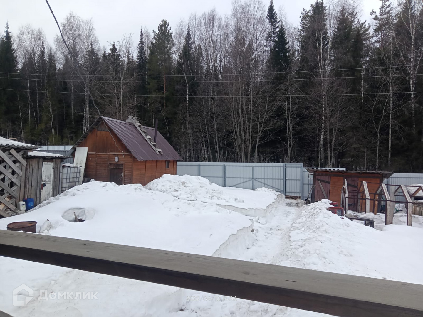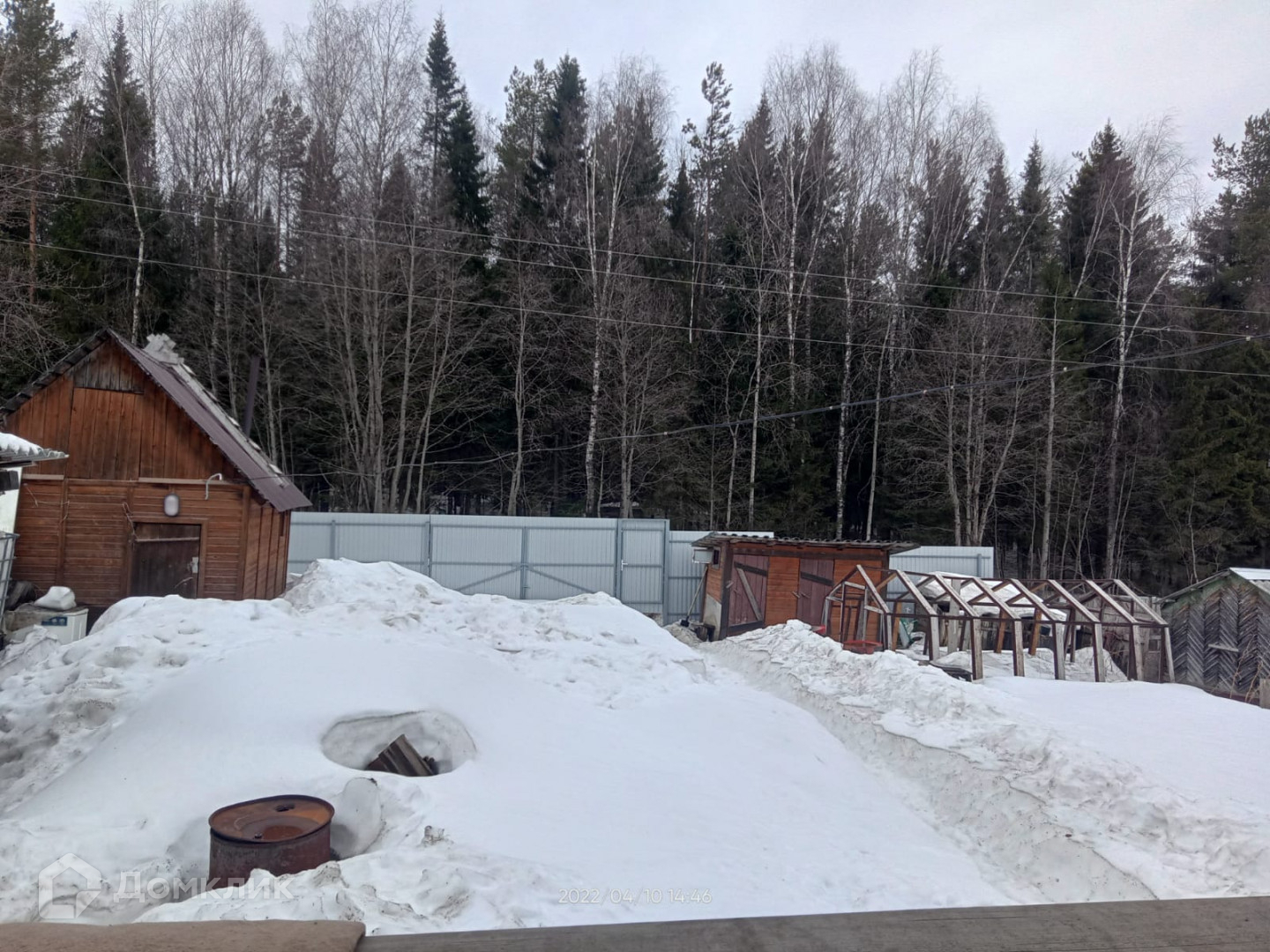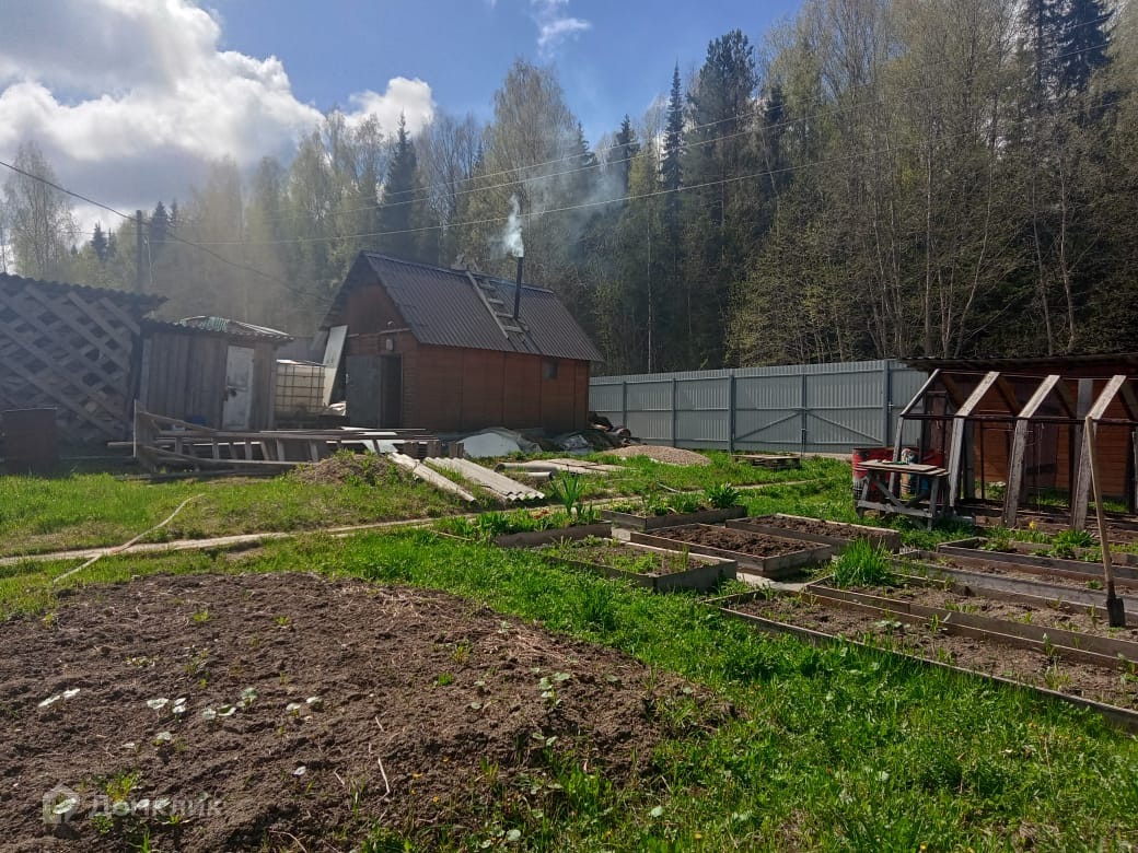 Имеется баня 3×7 м. из бруса на бетонном фундаменте. Металлический каркас теплицы на бетонном фундаменте. Дровяник, небольшие хоз.постройки.
