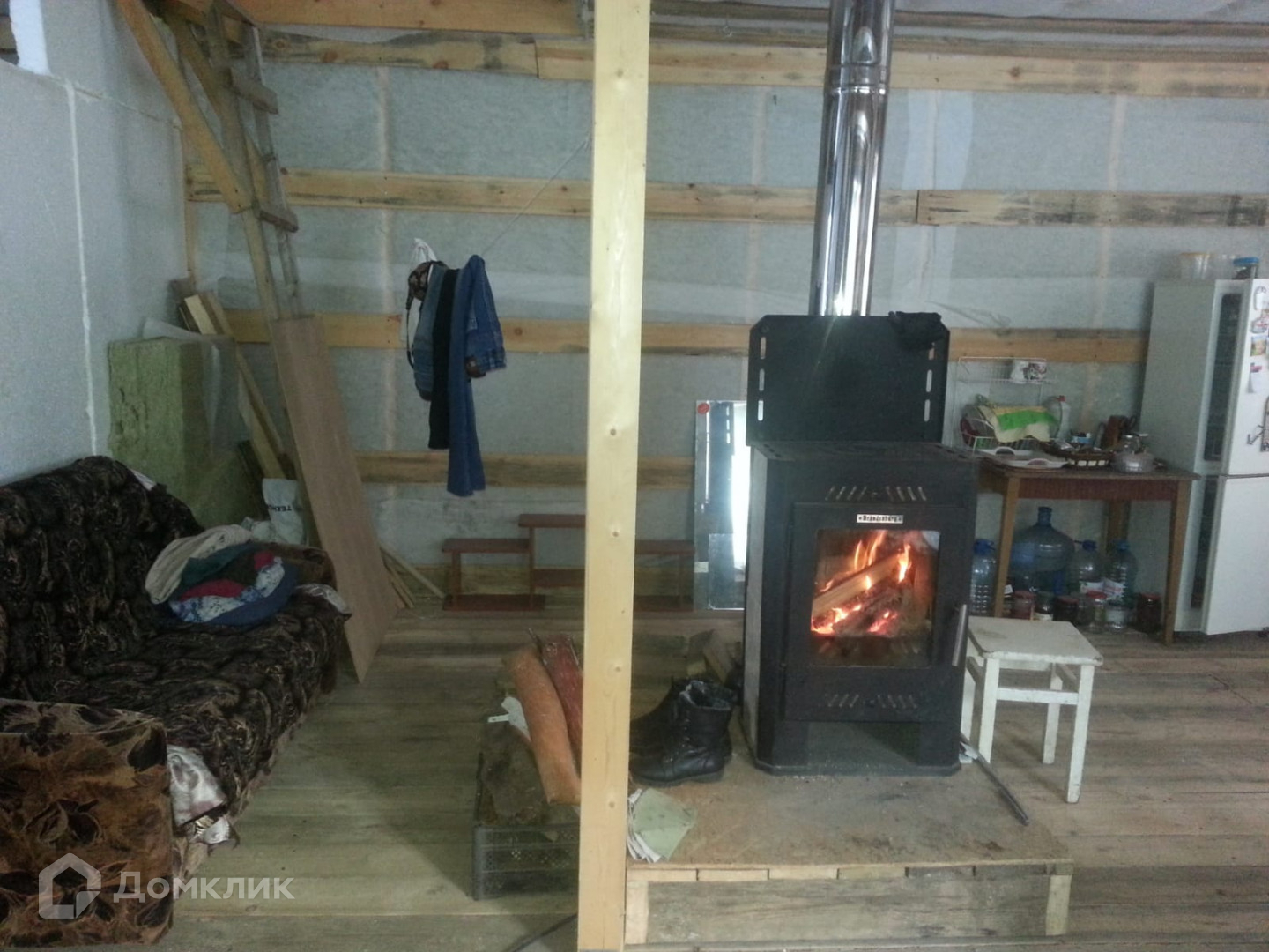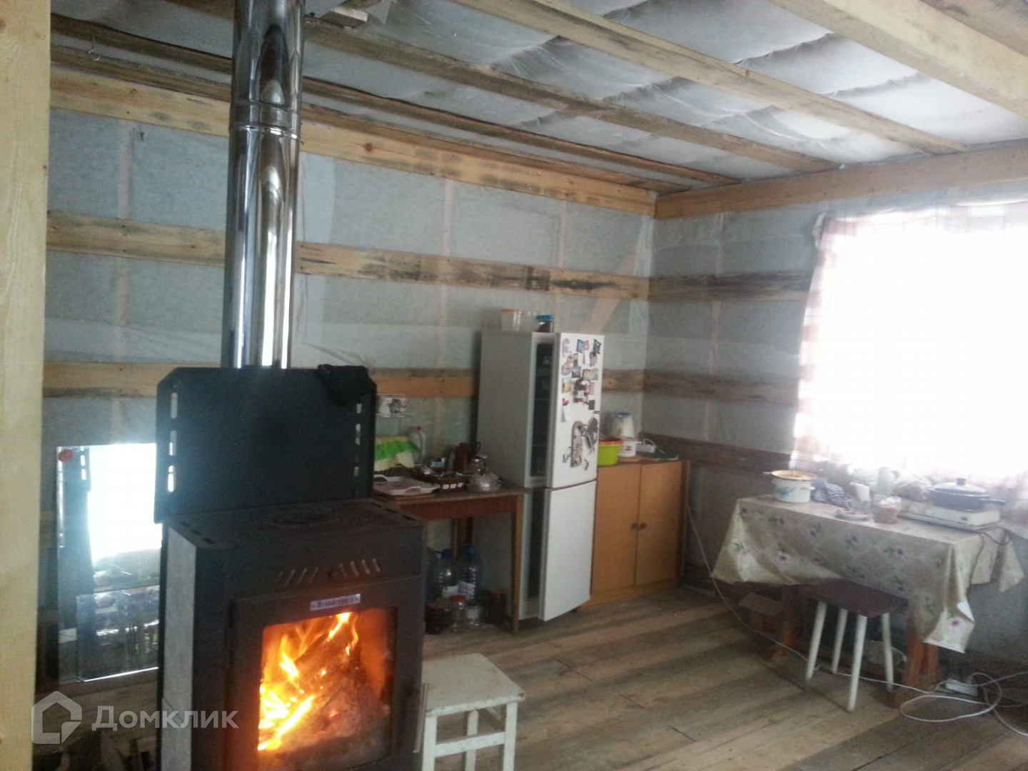 В доме имеется печь-камин. Электричество заведено в дом, внутри "черновая" проводка. Оплата электроэнергии по счетчику. Внешняя и внутренняя отделка отсутствуют.
