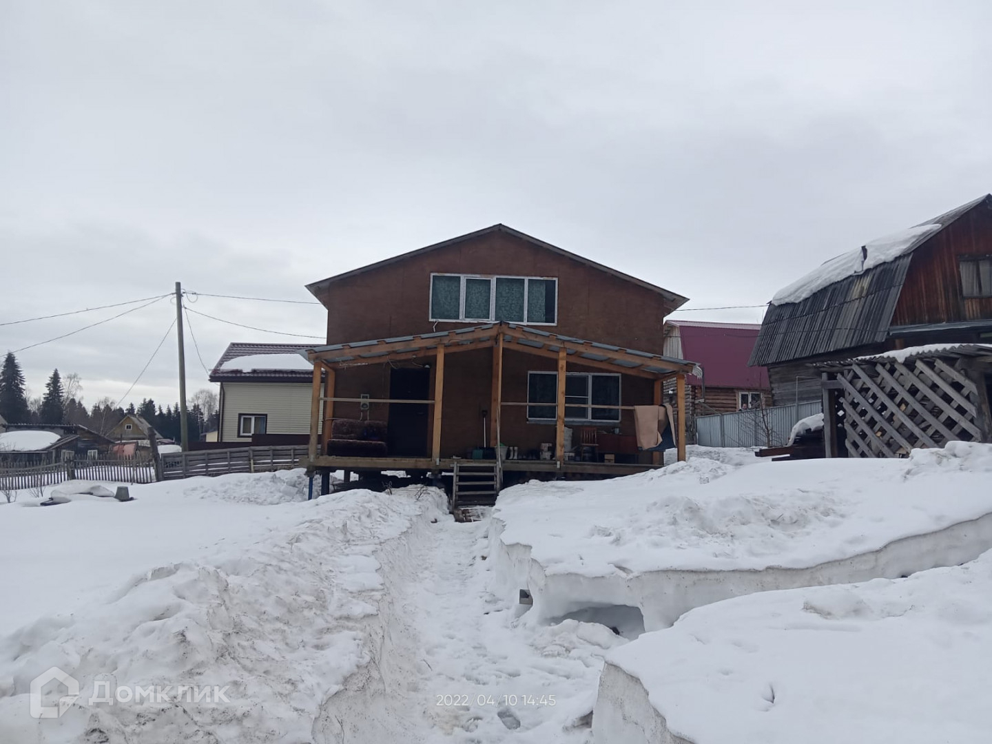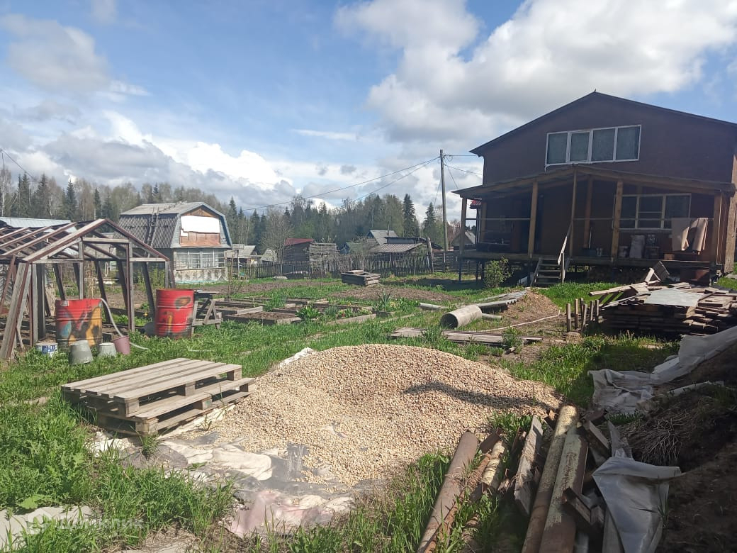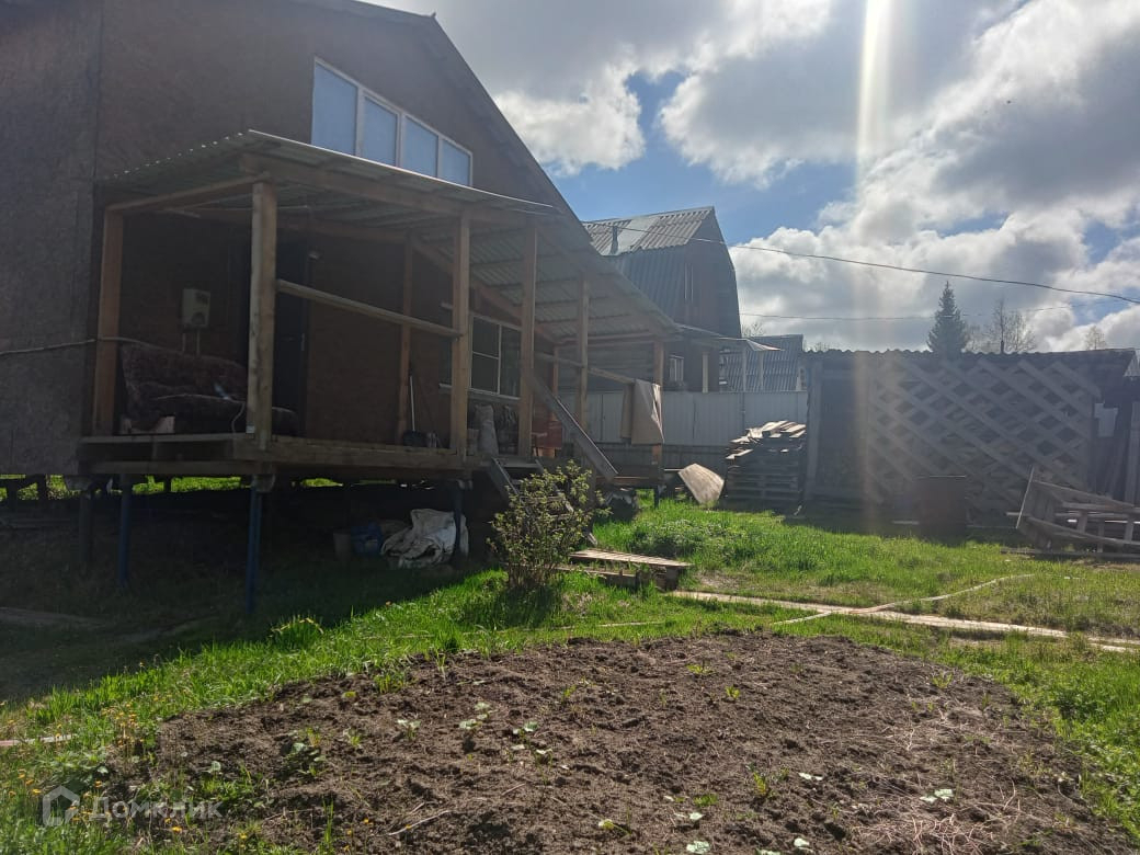 Арт. 20458198 Продам каркасный дом 6×8 м в СНТ "Дружба". Второй этаж сделан под крышу. Общая площадь 70 кв.м. Открытая терраса 2×8 м. Дом располагается на винтовых сваях, крыша сделана из профнастила, окна пластиковые.