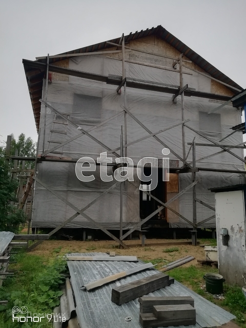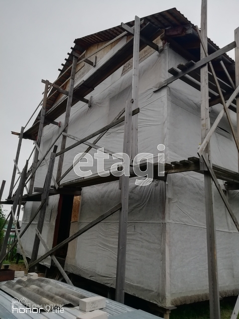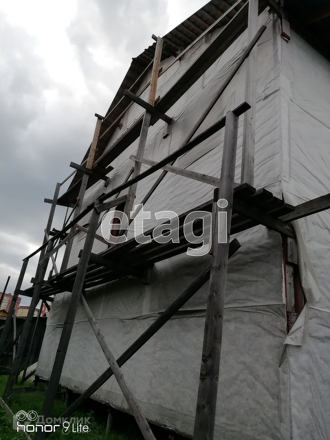 1 ДОМ площадью около 180 м2, 9 м на 10 м. На 1 этаже кухня, бойлерная, душ с санузлом, 2 комнаты, на 2 этаже 4 комнаты и санузел, под крышей сделана дополнительная площадь, крыша сделана из профнастила(единый лист длина 7,5 м по скату). Разрешение на строительство есть.