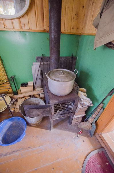2-этажный дом из бревна, печь железная.