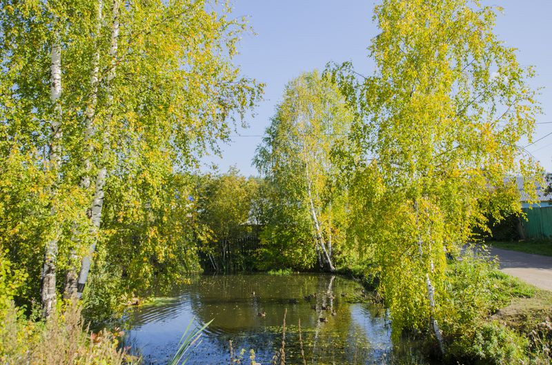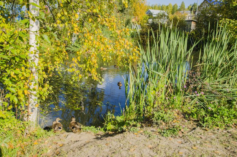 Дорога и свет - круглый год. Рядом пруд с утками.