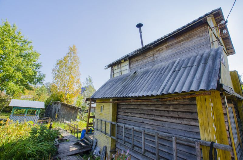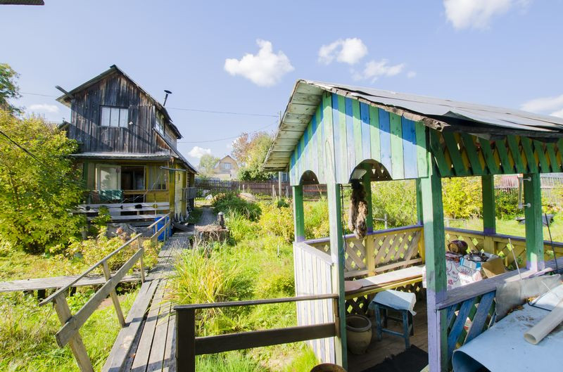Есть беседка, сарай, дровяник. Старая баня, нужен ремонт.