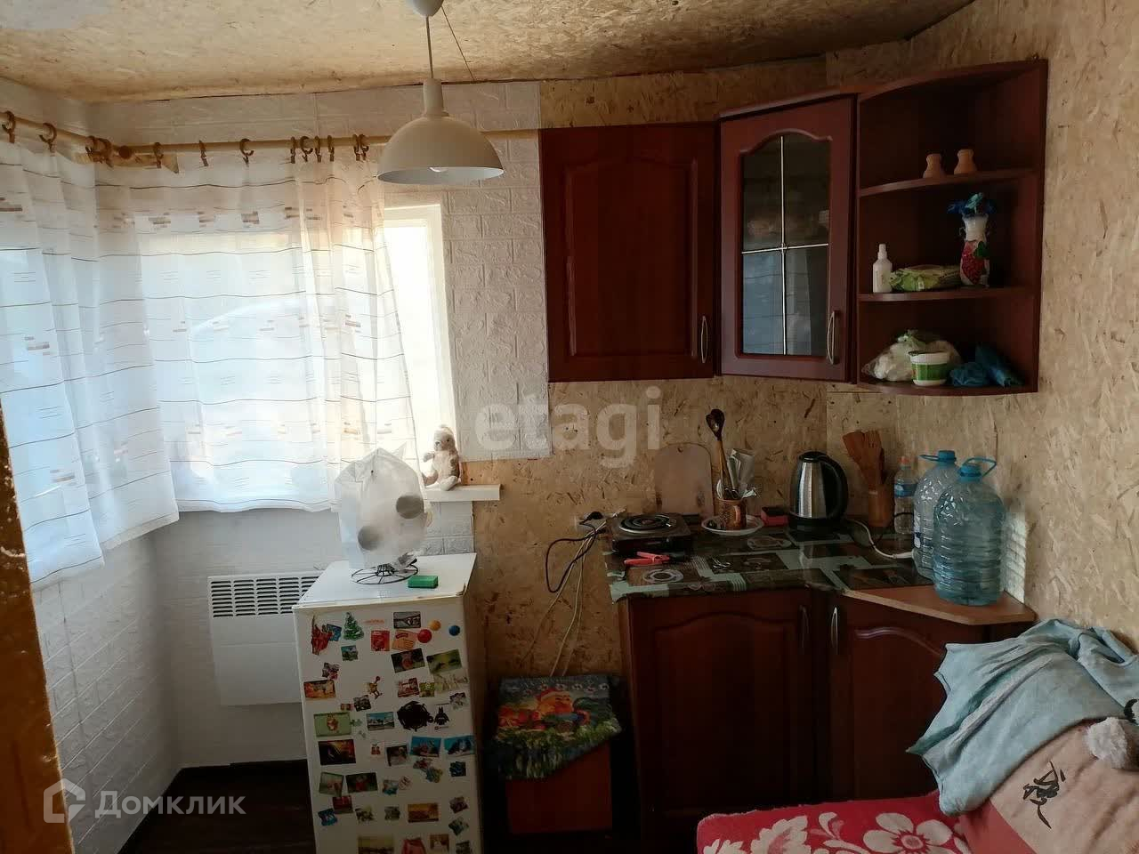 Дoм бpeвeнчатый с пpистpoйкой (кухня). Дом отапливает метaлличecкaя печь.