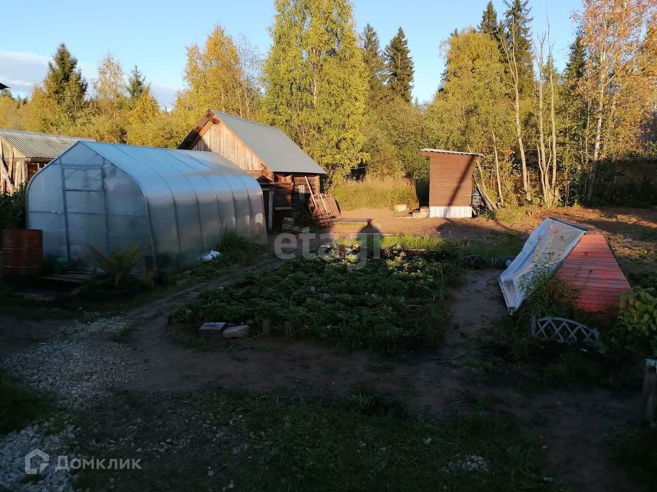 Участок разработан (грядки с клубникой, парник , теплица для огурцов, посажены кусты смородины, малины ,крыжовника, черноплодная рябина).