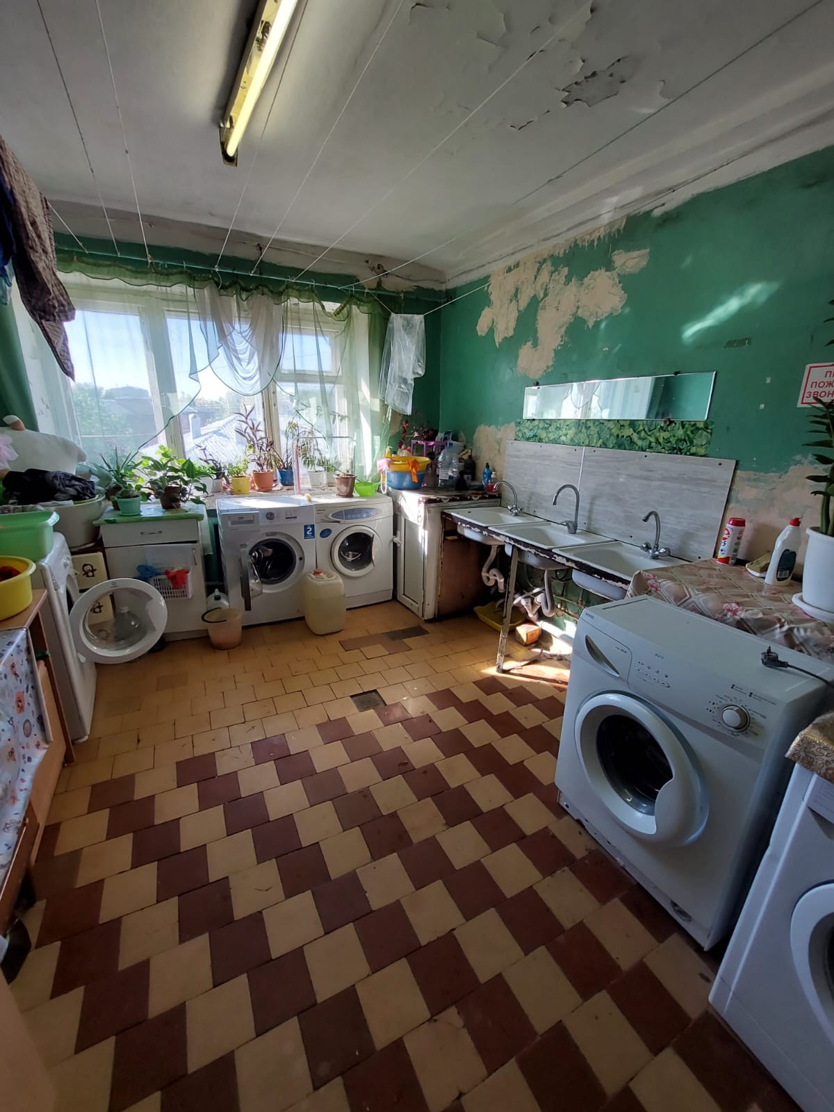 Секция чистая, есть кухня, душ, туалет. Живут в основном собственники. В подъезде делают ремонт.